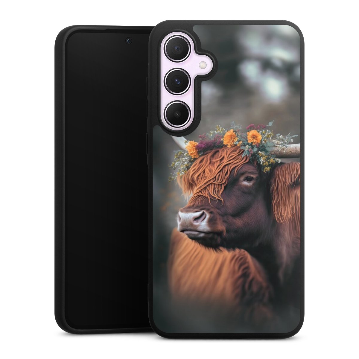 Highland Cow With Flowers with AI