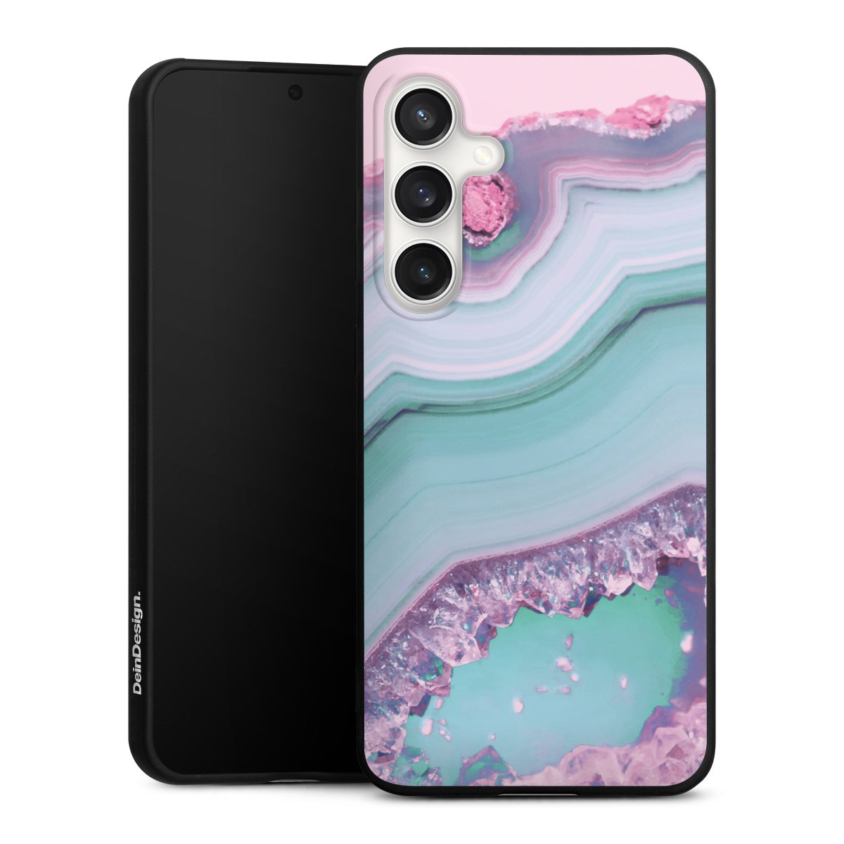 For the Silicone Premium Case Line we use the solid direct printing process. The print area covers the back, the edge remains unprinted. The mobile phone case can be ordered unprinted, fully printed, or partially printed. For your design, either choose one of our exclusive shop motifs or get creative and create your own design, for example with photos and overlays.