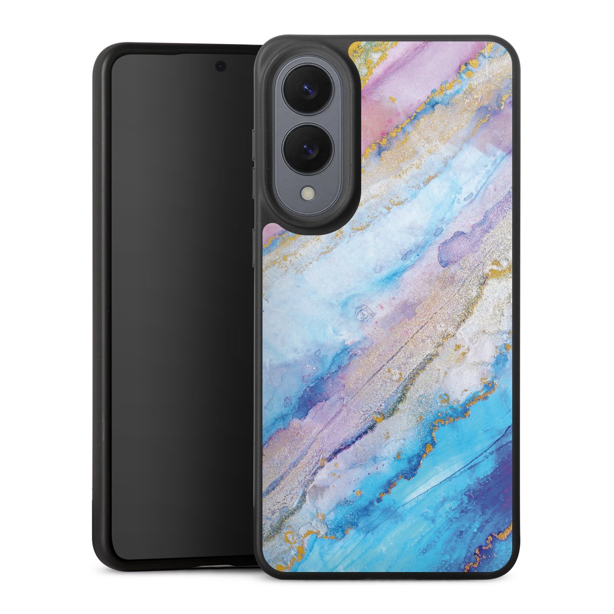 For the Silicone Premium Case Line we use the solid direct printing process. The print area covers the back, the edge remains unprinted. The mobile phone case can be ordered unprinted, fully printed, or partially printed. For your design, either choose one of our exclusive shop motifs or get creative and create your own design, for example with photos and overlays.
