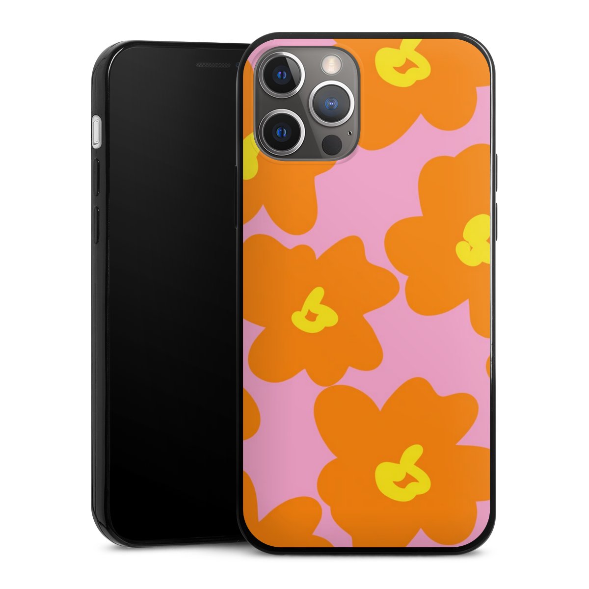 Retro floral pattern pink and orange