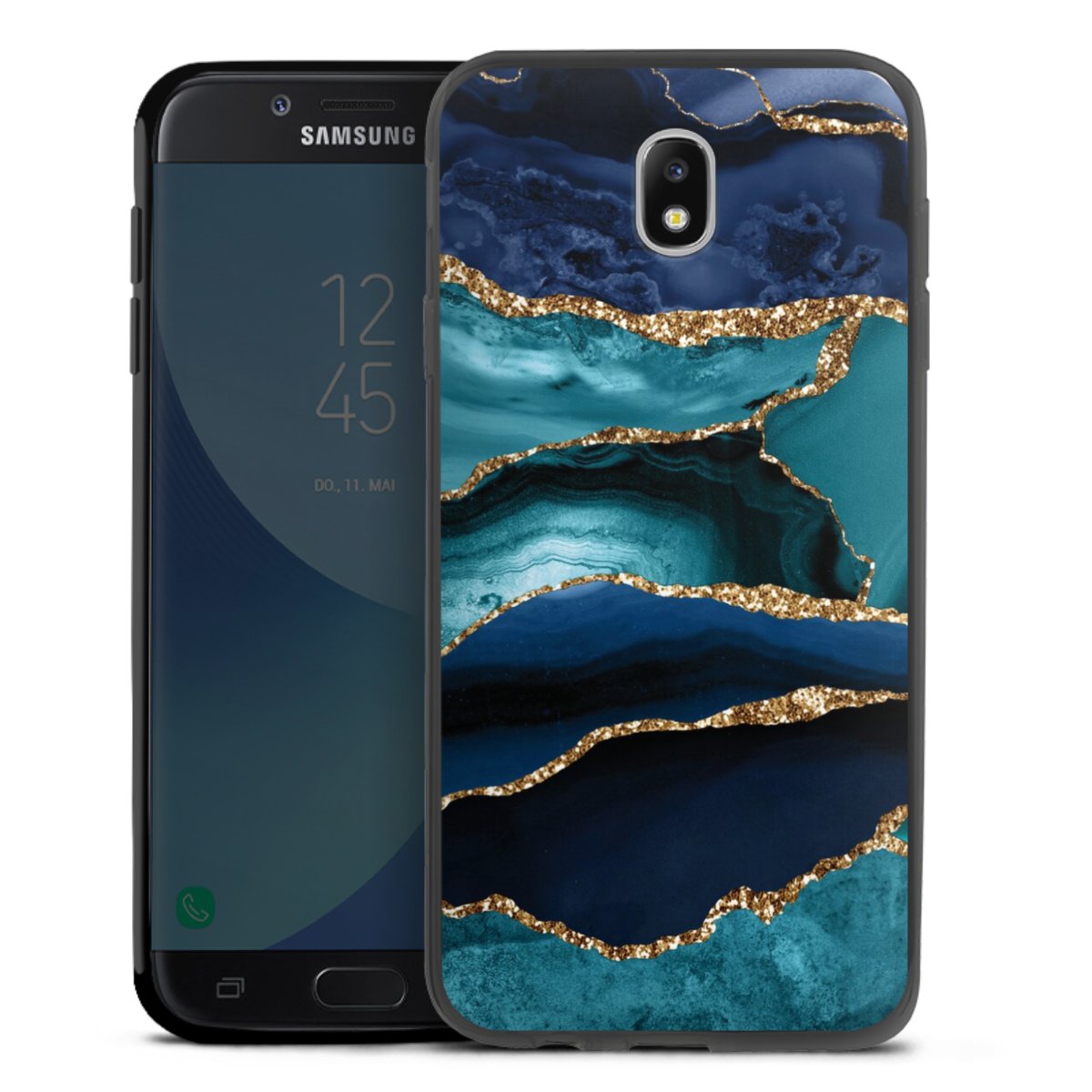 Dark and Light Blue Marble Gold Glitter Look