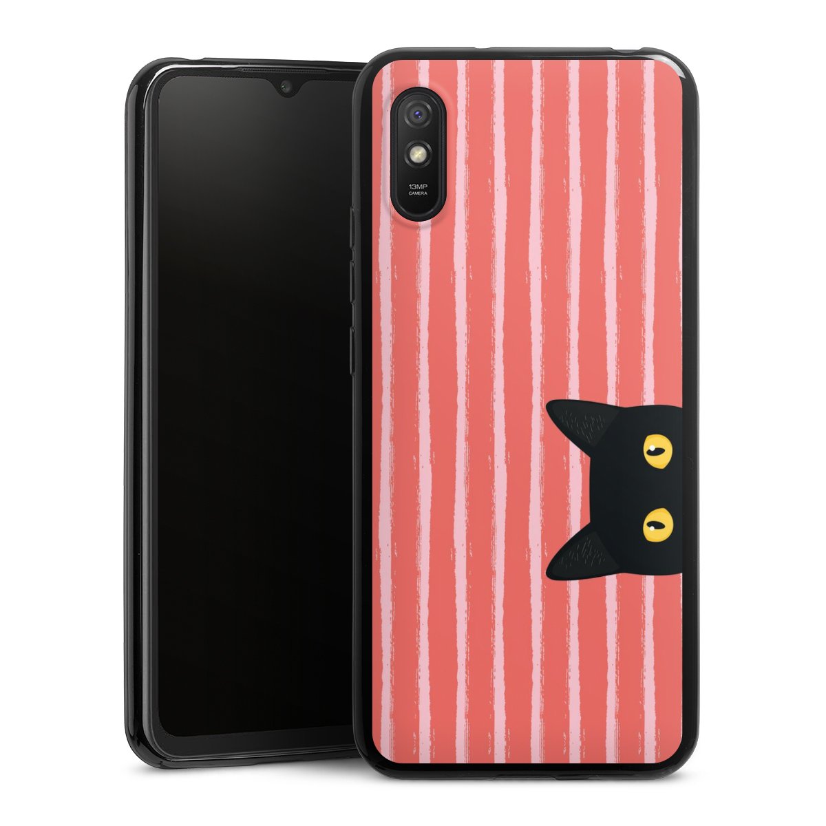 Black Cat on Orange Stripes
