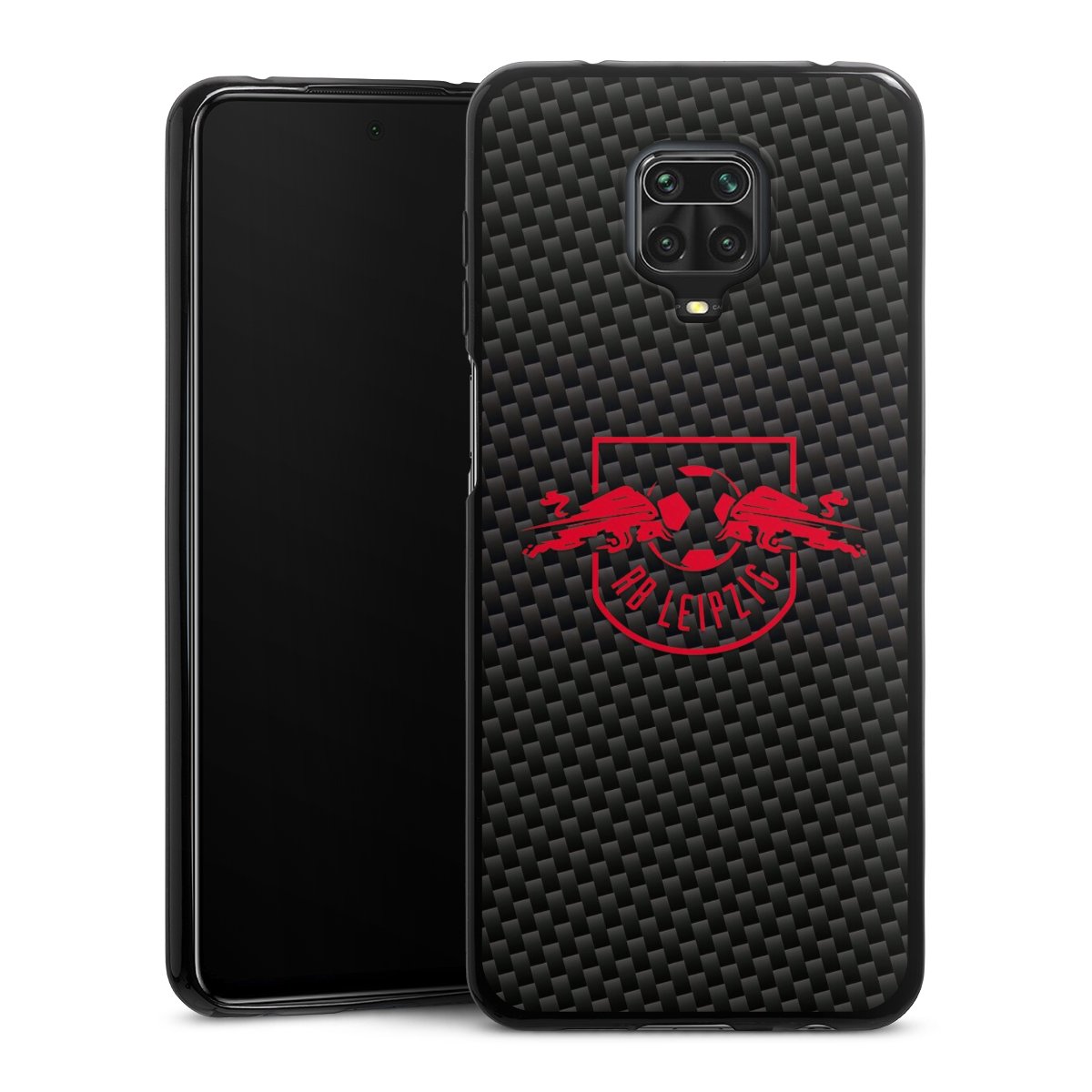 Red RB Leipzig logo on carbon look