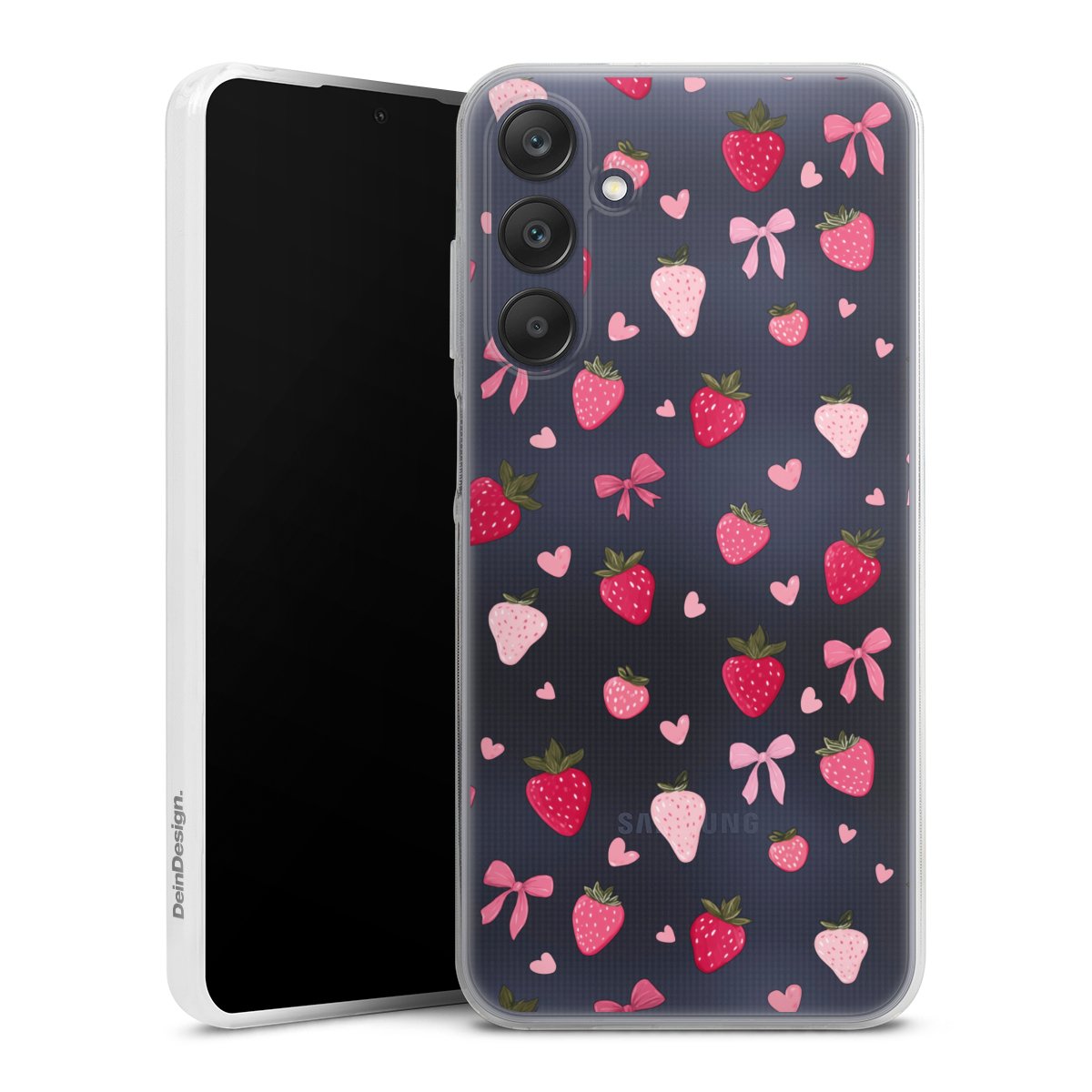Strawberry Ribbon Pattern Pink Transparent