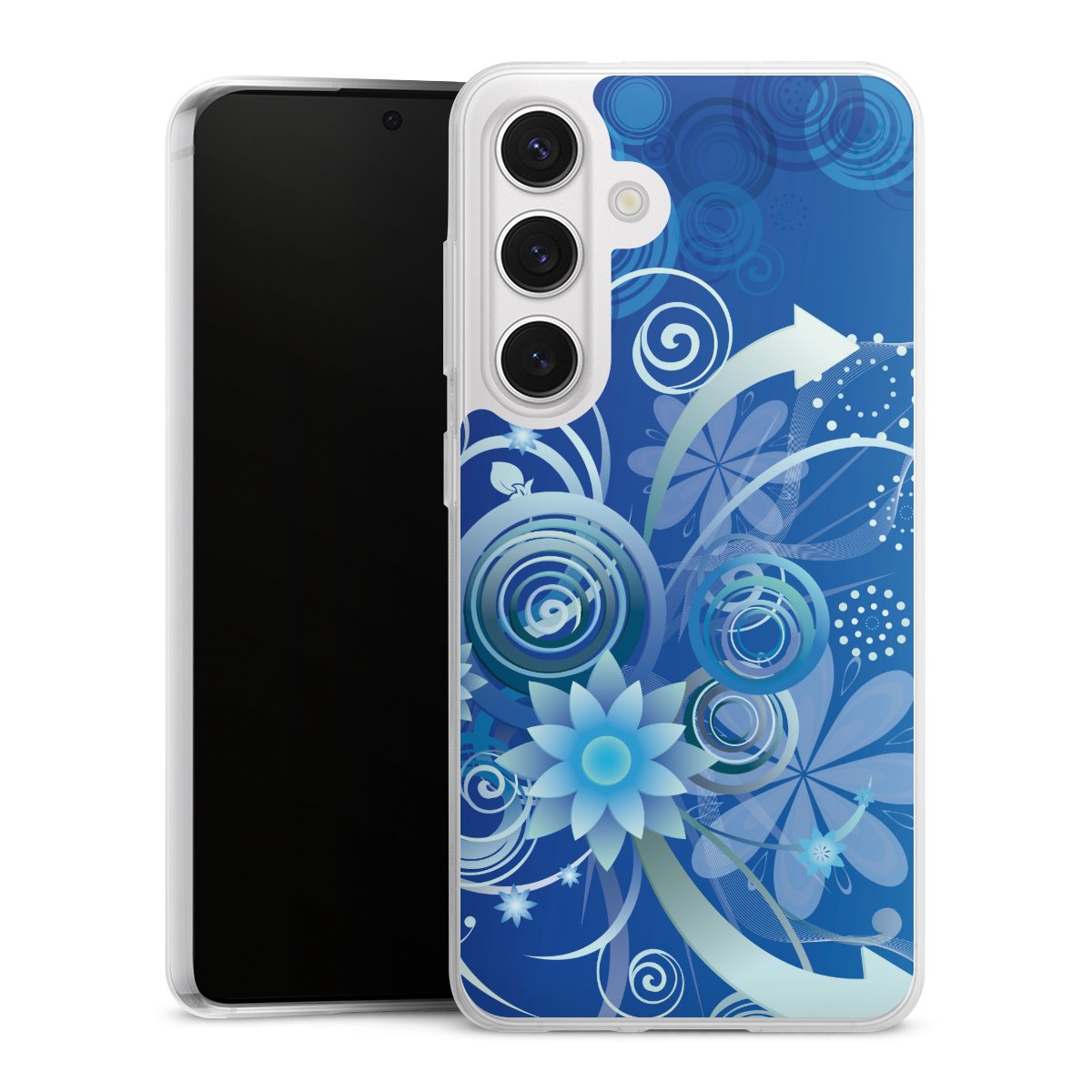 Flowers and Swirls Blue