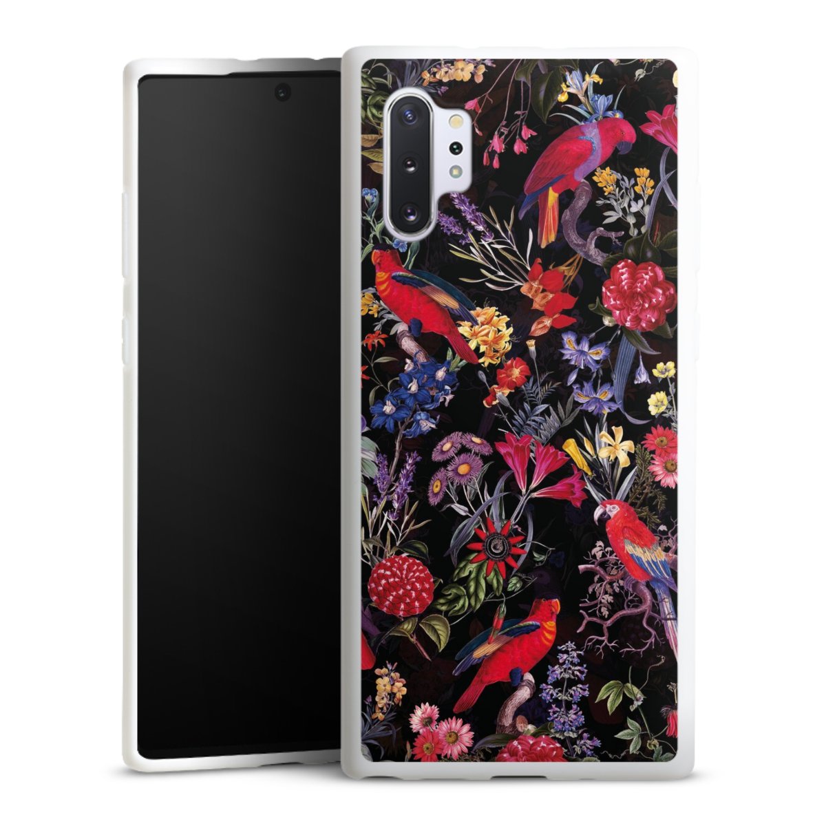 Dark Flowers and Parrots