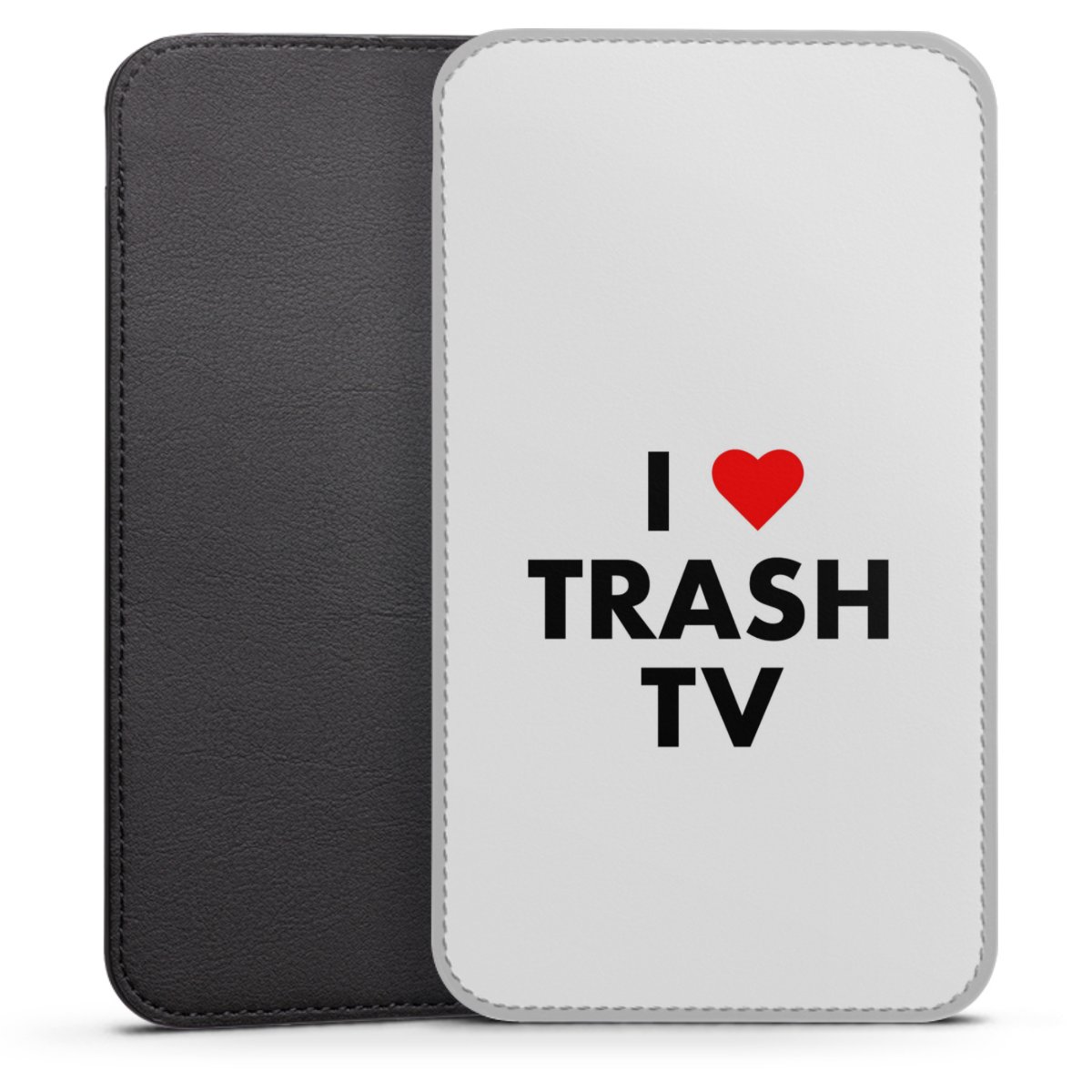 Product details This handy phone sleeve protects your device all around and is made from a highqhality vegan Skai® leather imitate in black on the backside and white on the printable frontside.