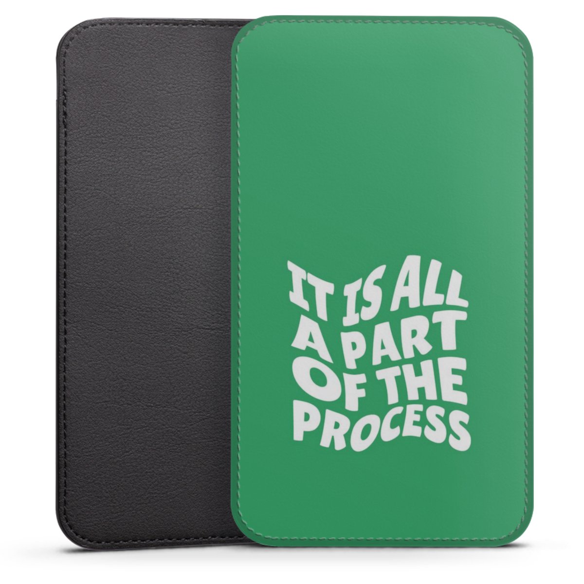 Product details This handy phone sleeve protects your device all around and is made from a highqhality vegan Skai® leather imitate in black on the backside and white on the printable frontside.
