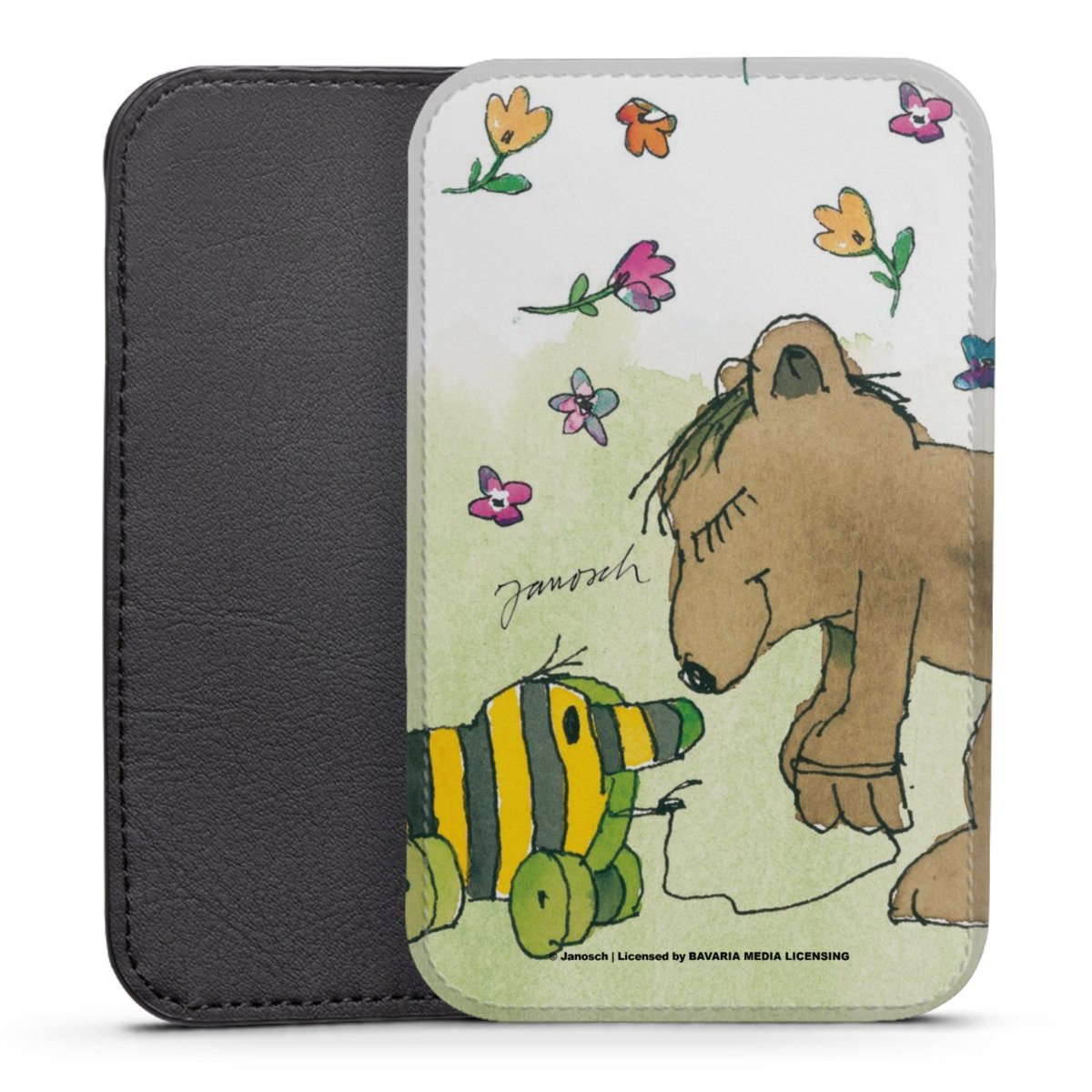 Product details This handy phone sleeve protects your device all around and is made from a highqhality vegan Skai® leather imitate in black on the backside and white on the printable frontside.