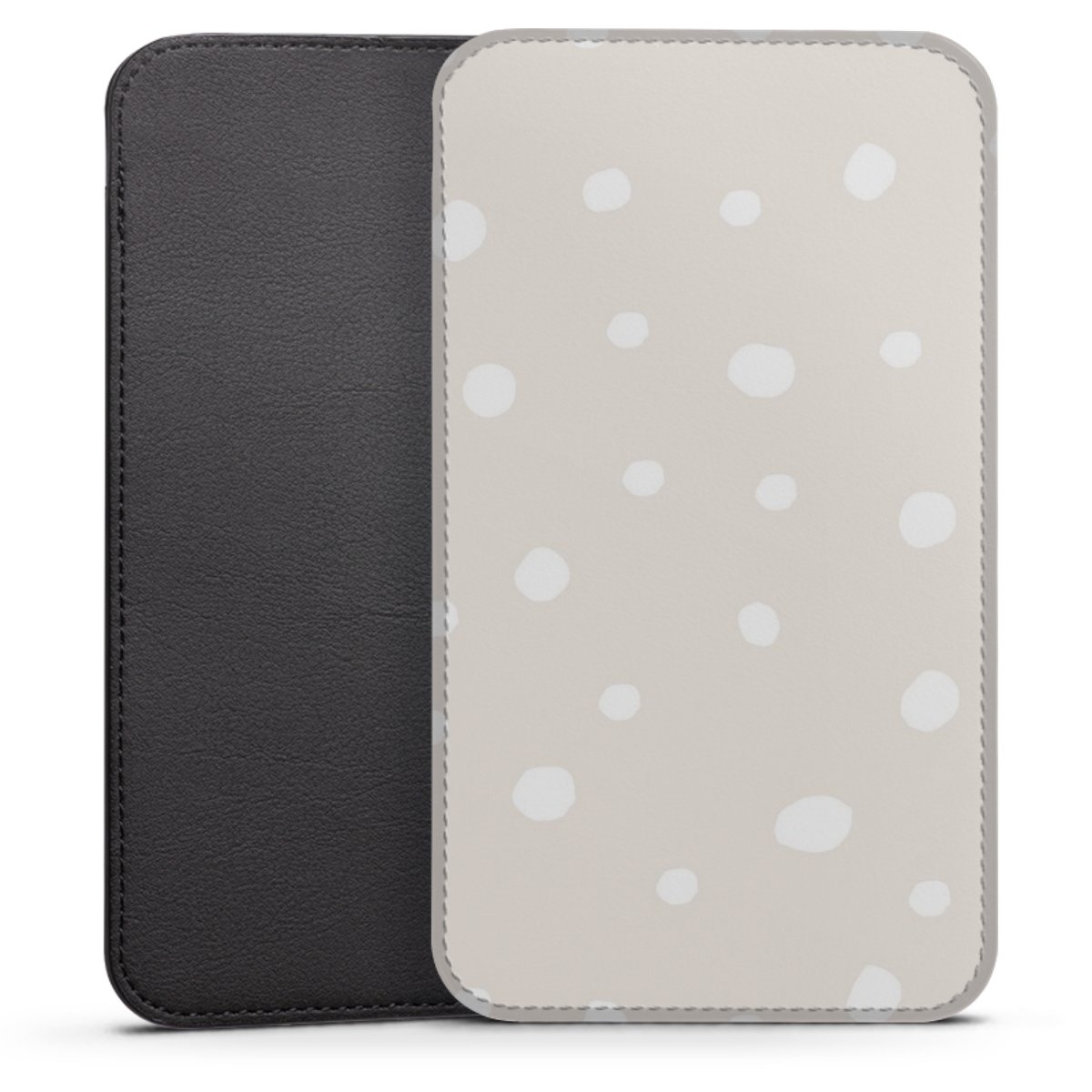 Product details This handy phone sleeve protects your device all around and is made from a highqhality vegan Skai® leather imitate in black on the backside and white on the printable frontside.