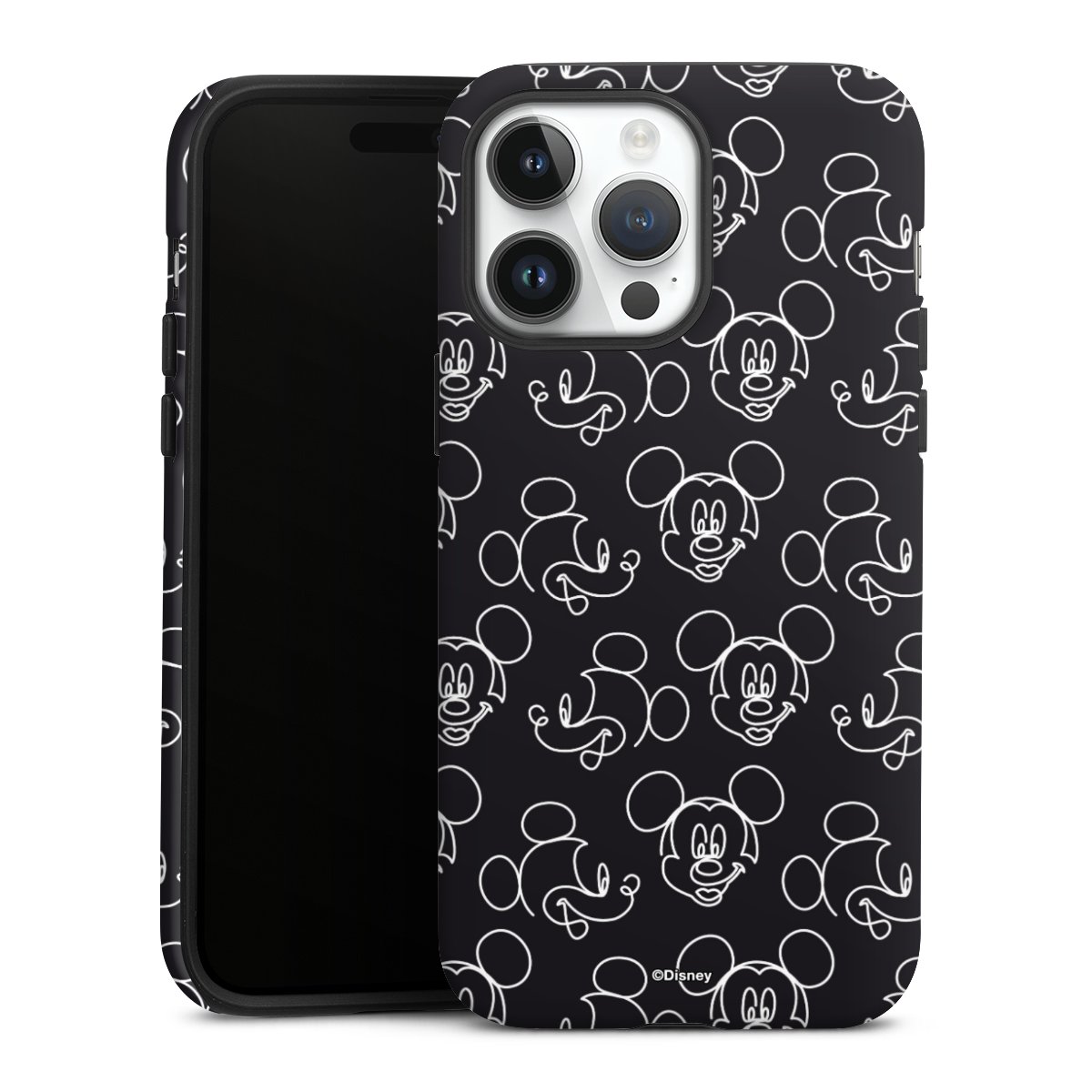 Disney Mickey Faces Black Line Art Pattern