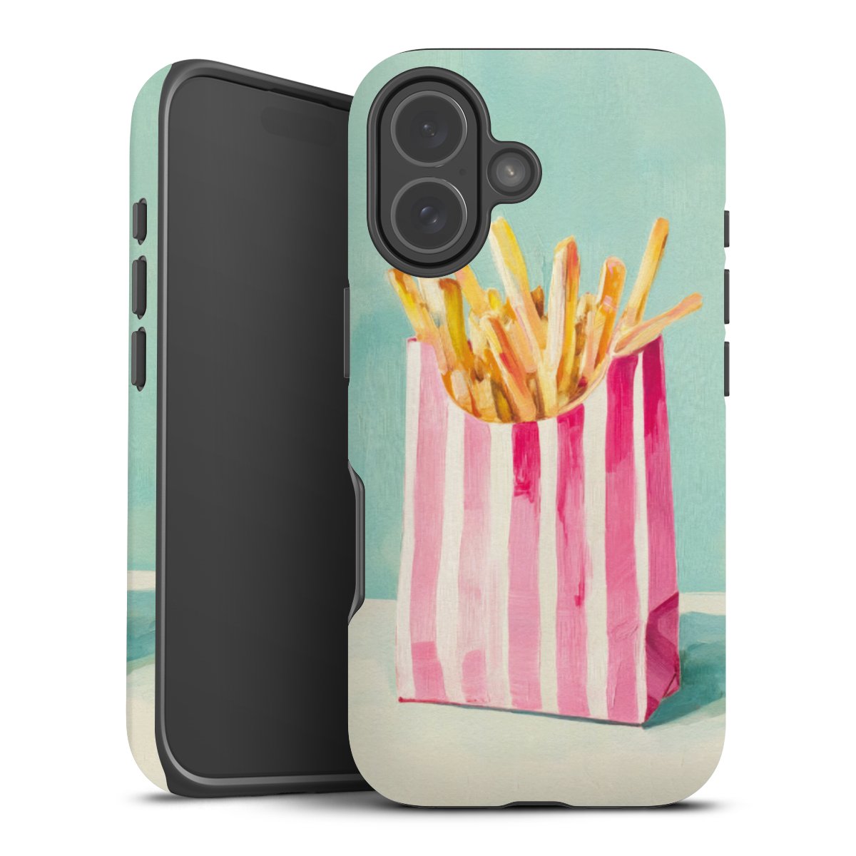 Product details Our most protective phone case combines the advantages of the Silicone and Premium Case: the flexible silicone core on the inside offers an extra shockabsorbing layer, protecting reliably against damages from dropping your phone. The longlasting, polycarbonate hard shell ensures additional stability and a brilliant print result. The surface of the 2,6 mm strong case feels smooth offering a comfortable grip. The case is available with a matt and glossy finish.