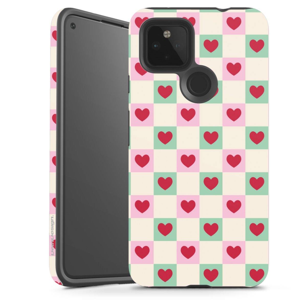 Valentine Checked Hearts Pattern Pink Green