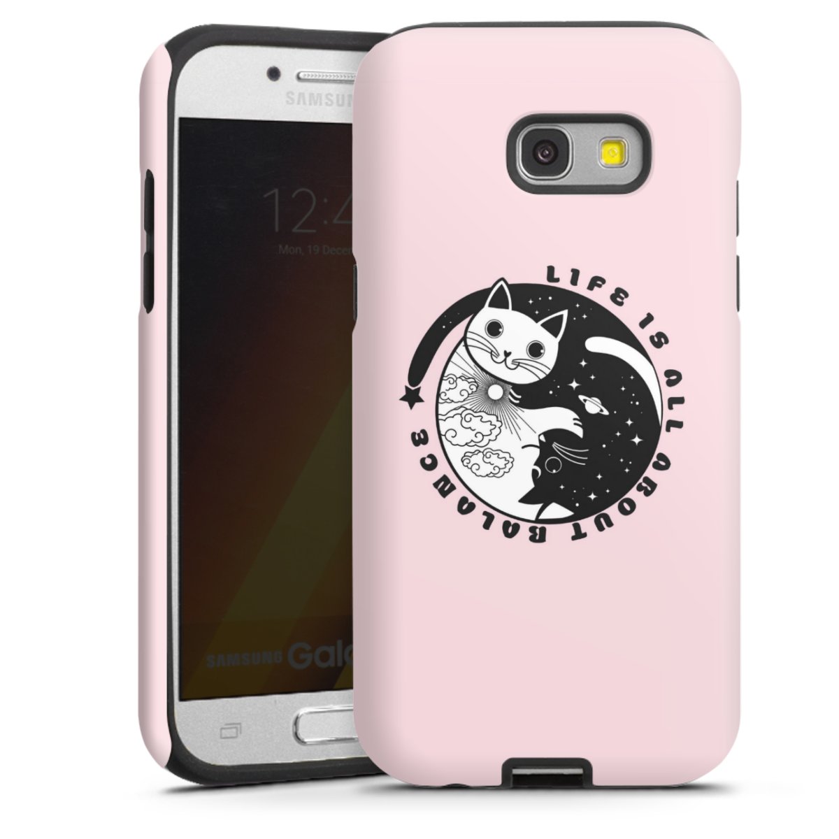 Installation First attach the silicone core to your phone, making sure all edges are covered. Next attach the hard shell to the silicone core, so your phone is placed securily inside the case. Extra tipp: you can use a damp cloth with a mild cleaning solution to clean your case. The glossy option can be cleaned from time to time with glass cleaner and a microfiber cloth, so it stays nice and shiny - as good as new.