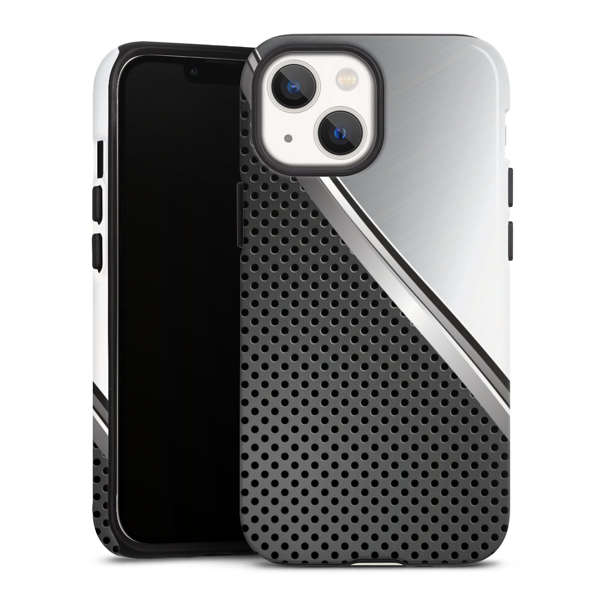 Product details Our most protective phone case combines the advantages of the Silicone and Premium Case: the flexible silicone core on the inside offers an extra shockabsorbing layer, protecting reliably against damages from dropping your phone. The longlasting, polycarbonate hard shell ensures additional stability and a brilliant print result. The surface of the 2,6 mm strong case feels smooth offering a comfortable grip. The case is available with a matt and glossy finish.