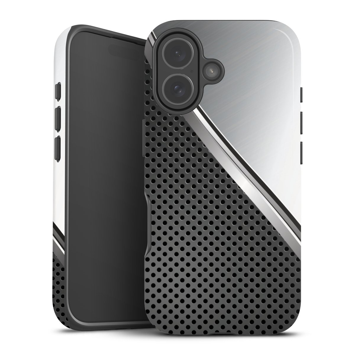 Product details Our most protective phone case combines the advantages of the Silicone and Premium Case: the flexible silicone core on the inside offers an extra shockabsorbing layer, protecting reliably against damages from dropping your phone. The longlasting, polycarbonate hard shell ensures additional stability and a brilliant print result. The surface of the 2,6 mm strong case feels smooth offering a comfortable grip. The case is available with a matt and glossy finish.