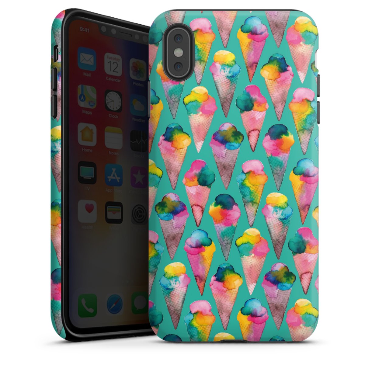 Print technology For our Tough Case we are using our specially advanced and longlasting sublimation print. This refined technology excels through its highquality, brilliant and pin-sharp print. The printable area covers the entire case: backside, frame and edges are fully printed. The silicone core remains unprinted. Choose one of our exklusive, pre-made shop designs or let your creativity shine and create your very own unique design with your pictures, overlays and text.