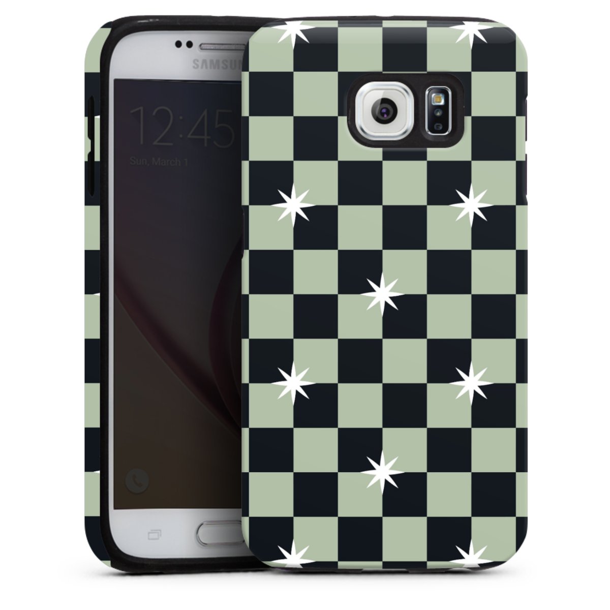 Checked Pattern Black Grey Stars