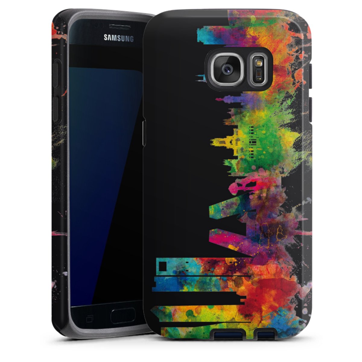 Product details Our most protective phone case combines the advantages of the Silicone and Premium Case: the flexible silicone core on the inside offers an extra shockabsorbing layer, protecting reliably against damages from dropping your phone. The longlasting, polycarbonate hard shell ensures additional stability and a brilliant print result. The surface of the 2,6 mm strong case feels smooth offering a comfortable grip. The case is available with a matt and glossy finish.