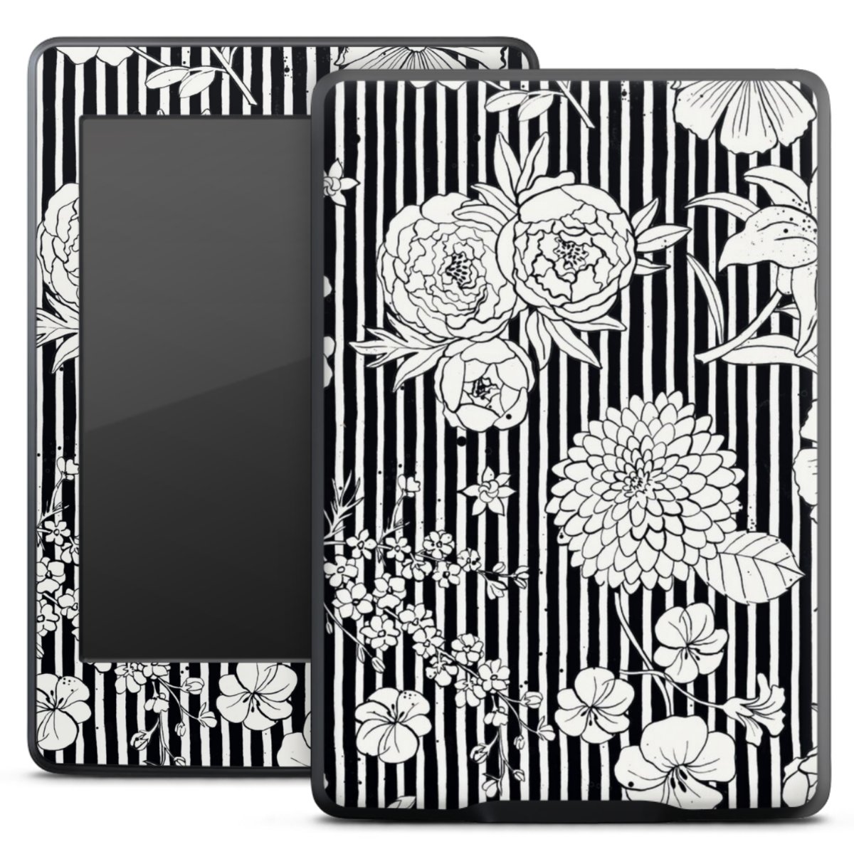 Flowers and Stripes Black and White