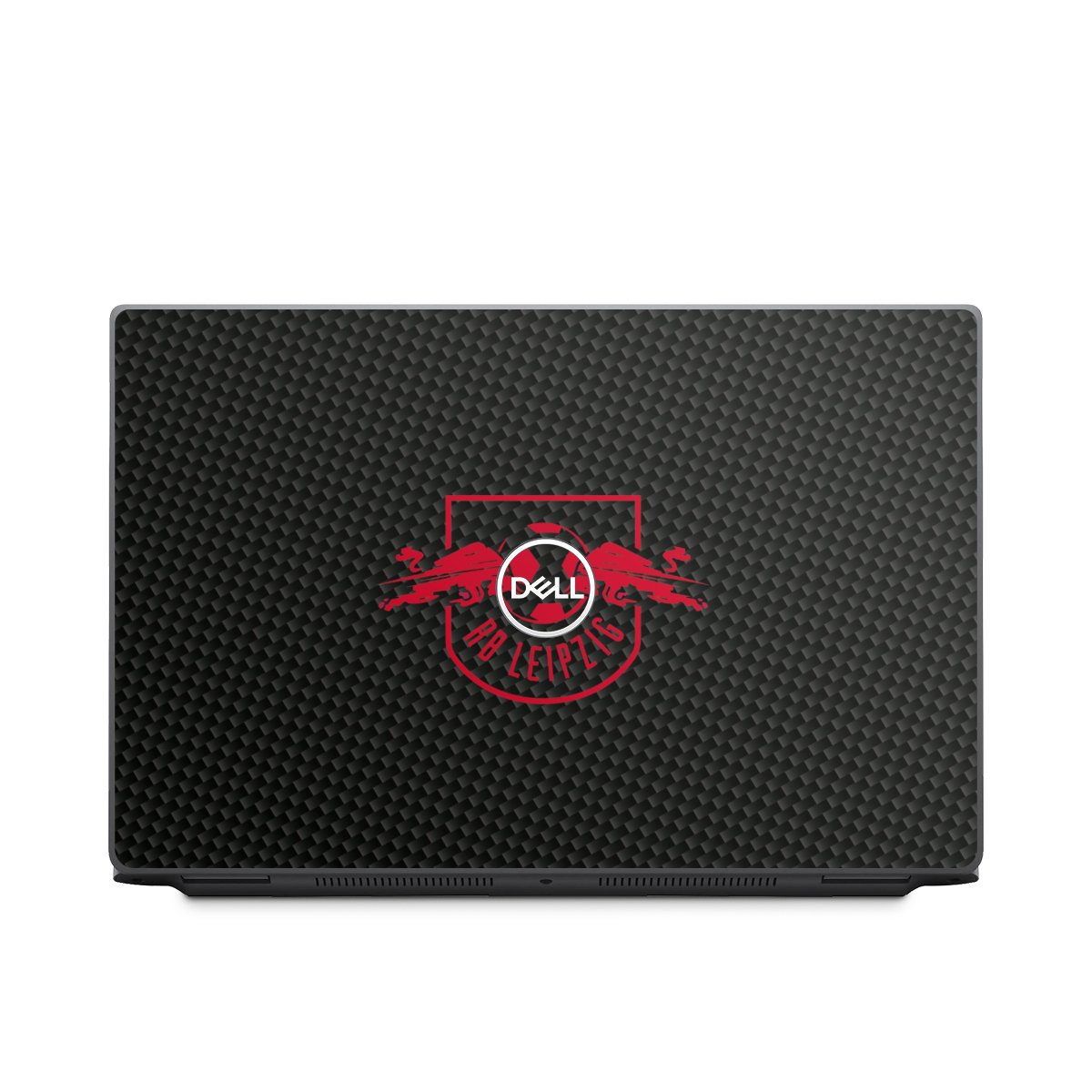 Red RB Leipzig logo on carbon look
