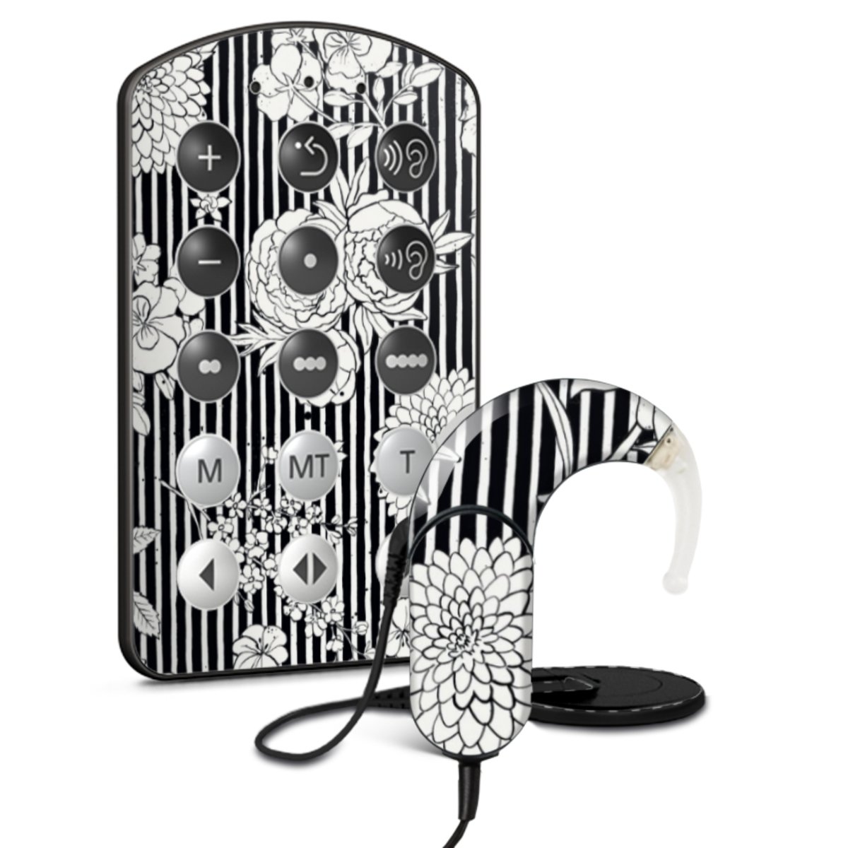 Flowers and Stripes Black and White