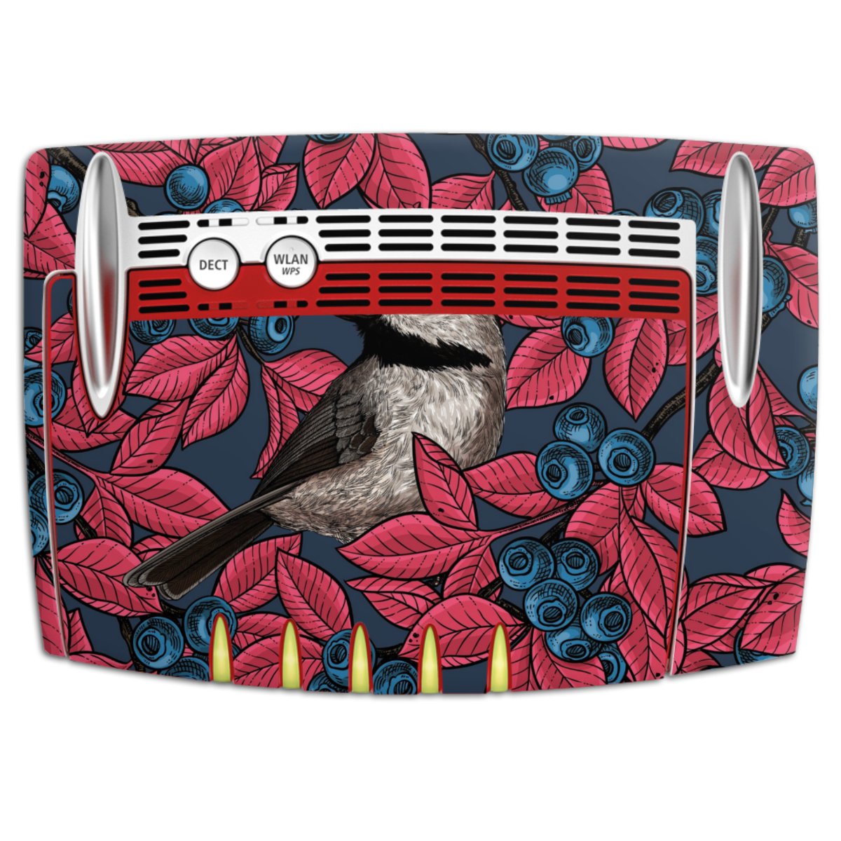 Blueberries And Birds On Navy