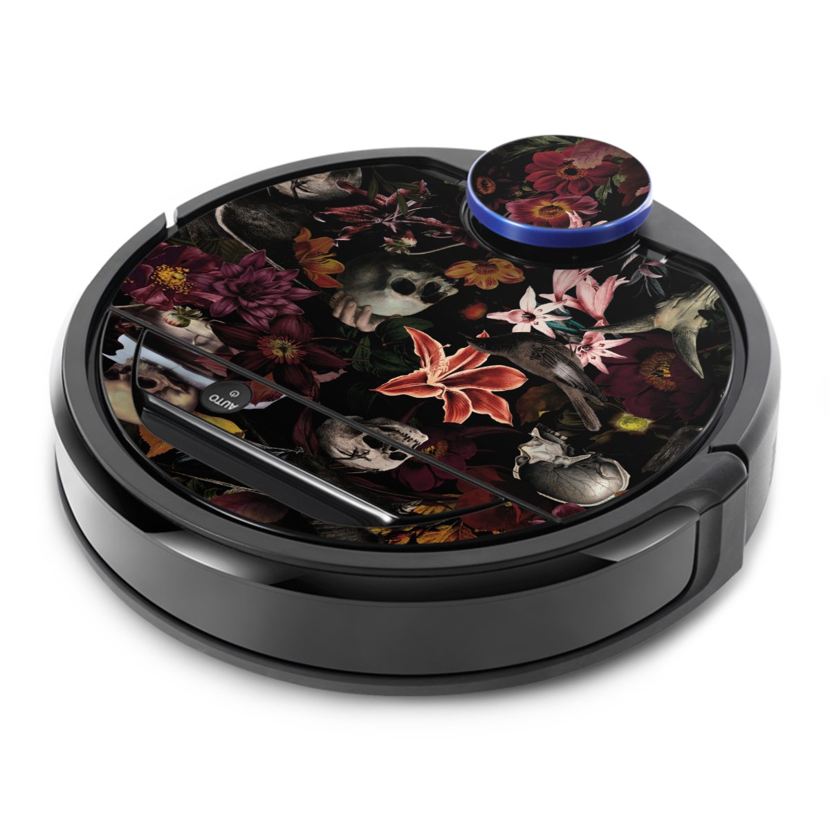 Skulls and Flowers on Dark Background
