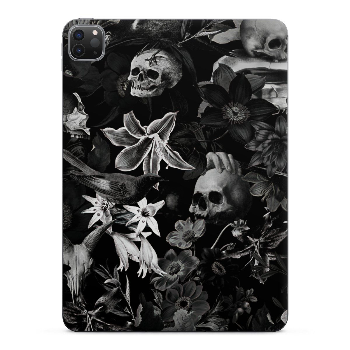 Skulls and Flowers on Black Background