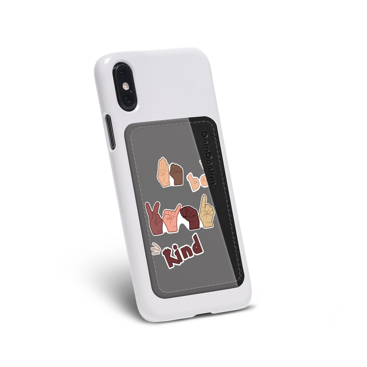 We advise to clean your phone case with a soft cloth and a mild detergent first. On the back of the card holder you will find an adhesive strip. Pull off the protective film and press the card holder firmly against the phone case – that’s it!
