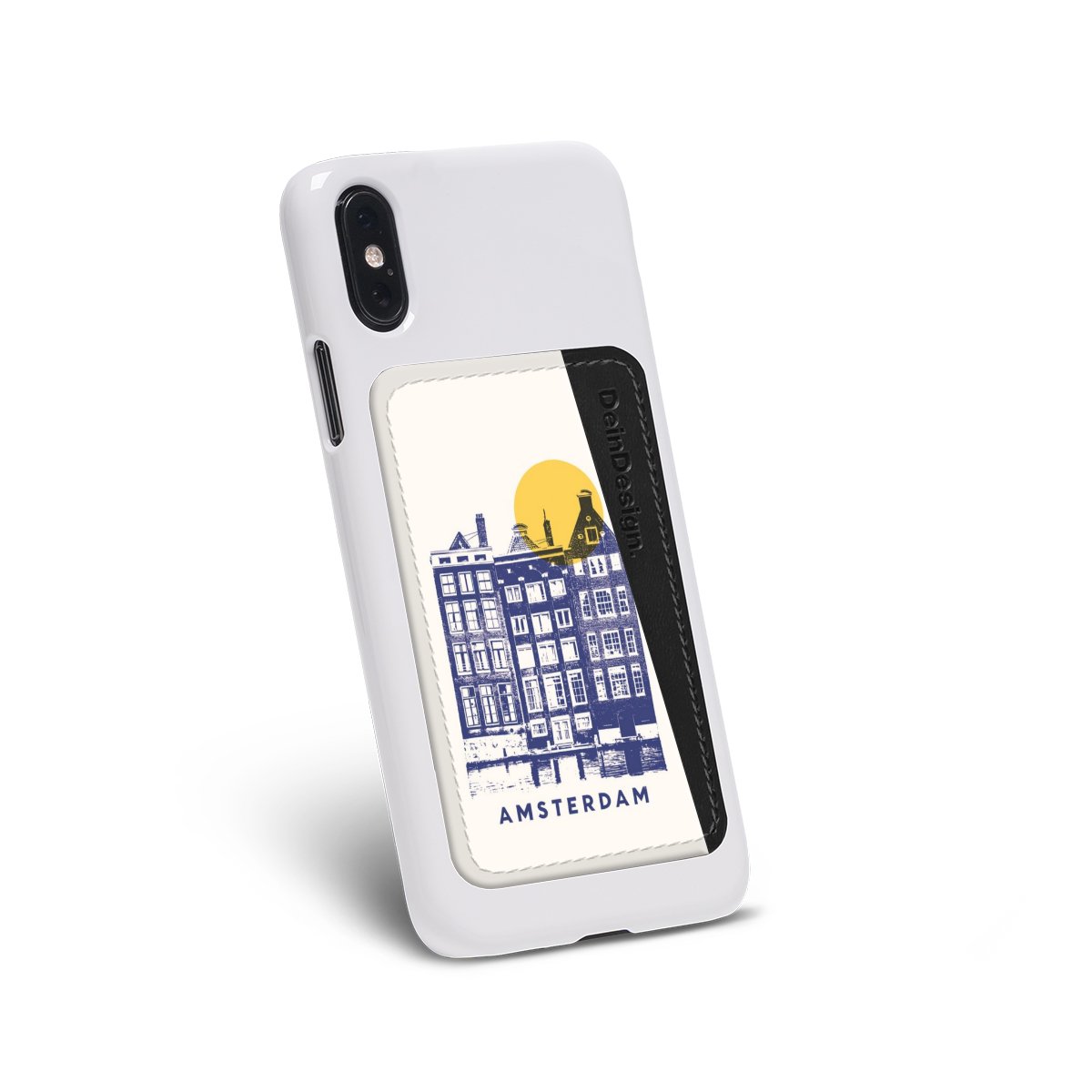 We advise to clean your phone case with a soft cloth and a mild detergent first. On the back of the card holder you will find an adhesive strip. Pull off the protective film and press the card holder firmly against the phone case – that’s it!