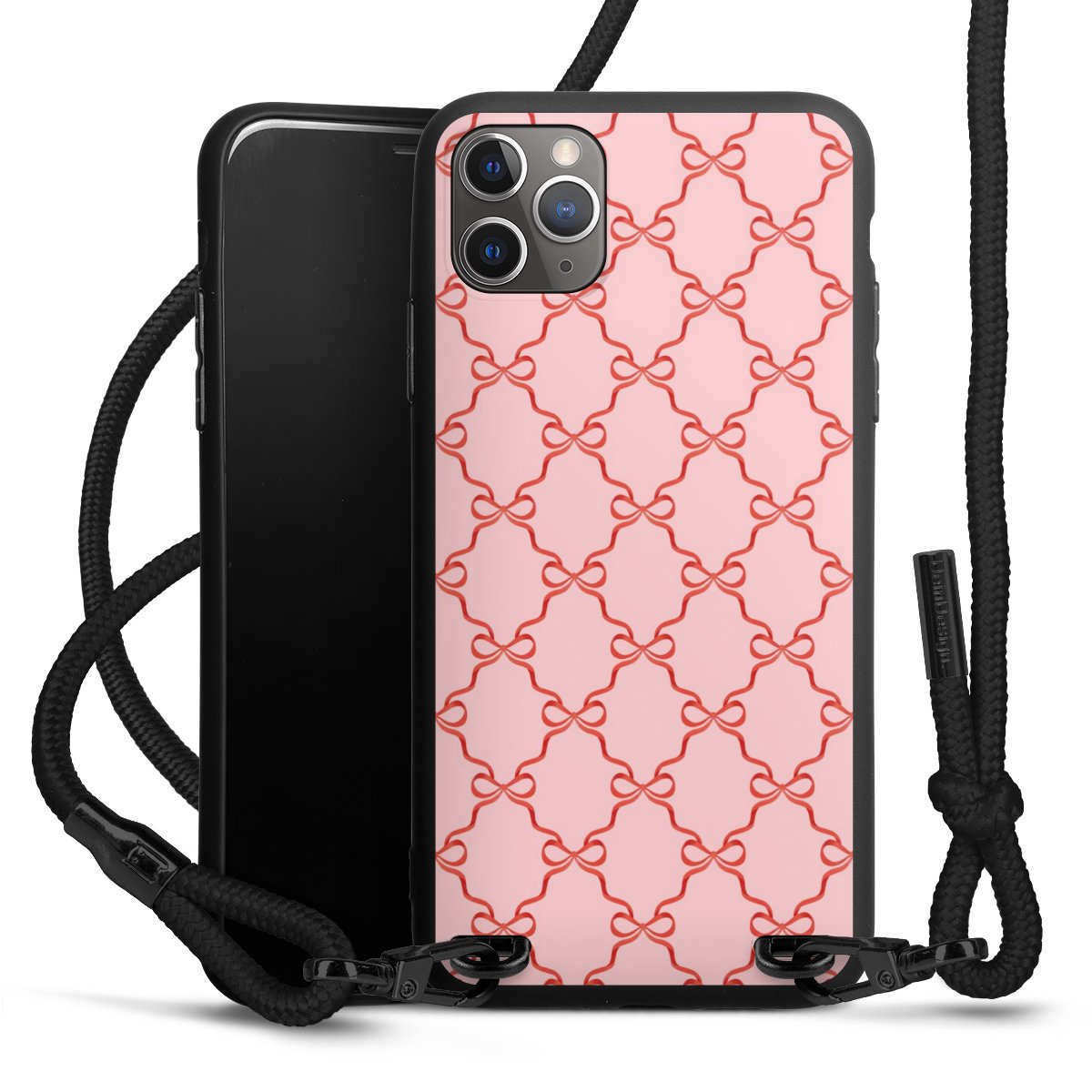 The matt black silicone case is made of flexible TPU (thermoplastic polyurethane) and offers robust protection. The durable, unbreakable material makes the cover flexible and dimensionally stable at the same time. The matte surface makes your design stand out more and is less susceptible to fingerprints and dirt. The stylish trend accessory fits comfortably in the hand and is perfectly complemented by the fabric (polyester) mobile phone strap. The braided fabric strap is approx. 1.70 metres long with a diameter of approx. 0.5 cm. Due to the special knotting technique, the length of the strap can be adjusted by simply pulling it, so that you can adapt it individually to your wishes. The practical case to wear around your neck is available with the fabric strap in black. As a little icing on the cake, we have provided the strap with a chic metal fastener in matt black. The strap is securely fastened to the case with loops made of high-quality genuine leather and press studs. The ends of the fabric strap are covered with metallic end caps and thus protected from fraying.