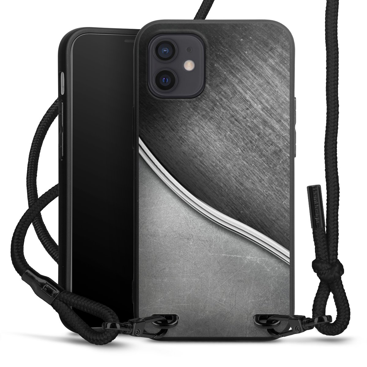 Pure Black: Phone case, fabric strap and metal details in stylish matt black.