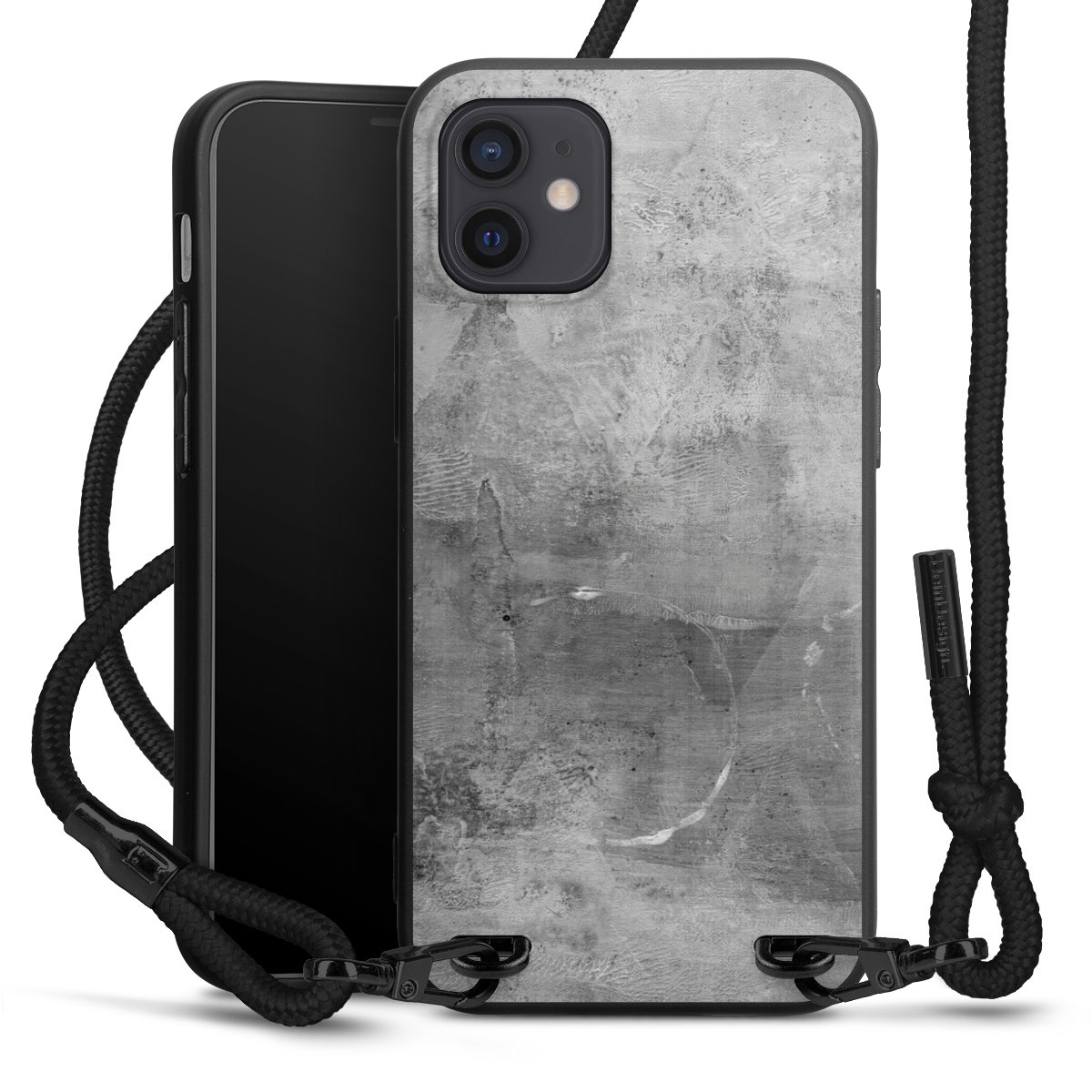 Pure Black: Phone case, fabric strap and metal details in stylish matt black.