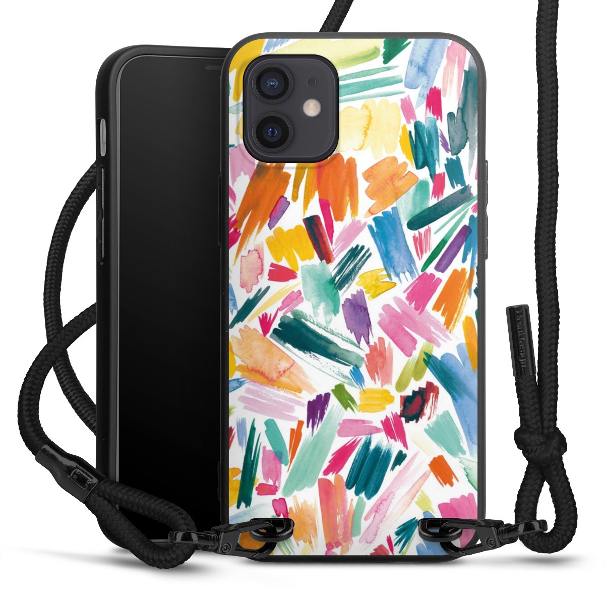 We use the solid direct print process for this phone case, which is why the print area only covers the back and the edge remains unprinted. The case to wear around your neck can be ordered unprinted, fully printed, or partially printed. For your design, either choose one of our exclusive shop motifs or get creative and create your own design, for example with photos and overlays. Design your own personal trend accessory and make an individual statement on the streets!