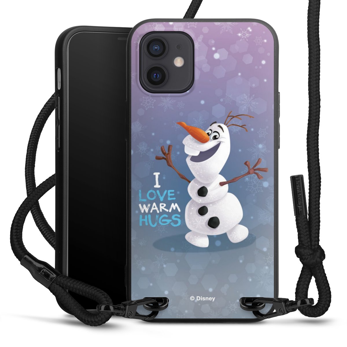 The matt black silicone case is made of flexible TPU (thermoplastic polyurethane) and offers robust protection. The durable, unbreakable material makes the cover flexible and dimensionally stable at the same time. The matte surface makes your design stand out more and is less susceptible to fingerprints and dirt. The stylish trend accessory fits comfortably in the hand and is perfectly complemented by the fabric (polyester) mobile phone strap. The braided fabric strap is approx. 1.70 metres long with a diameter of approx. 0.5 cm. Due to the special knotting technique, the length of the strap can be adjusted by simply pulling it, so that you can adapt it individually to your wishes. The practical case to wear around your neck is available with the fabric strap in black. As a little icing on the cake, we have provided the strap with a chic metal fastener in matt black. The strap is securely fastened to the case with loops made of high-quality genuine leather and press studs. The ends of the fabric strap are covered with metallic end caps and thus protected from fraying.