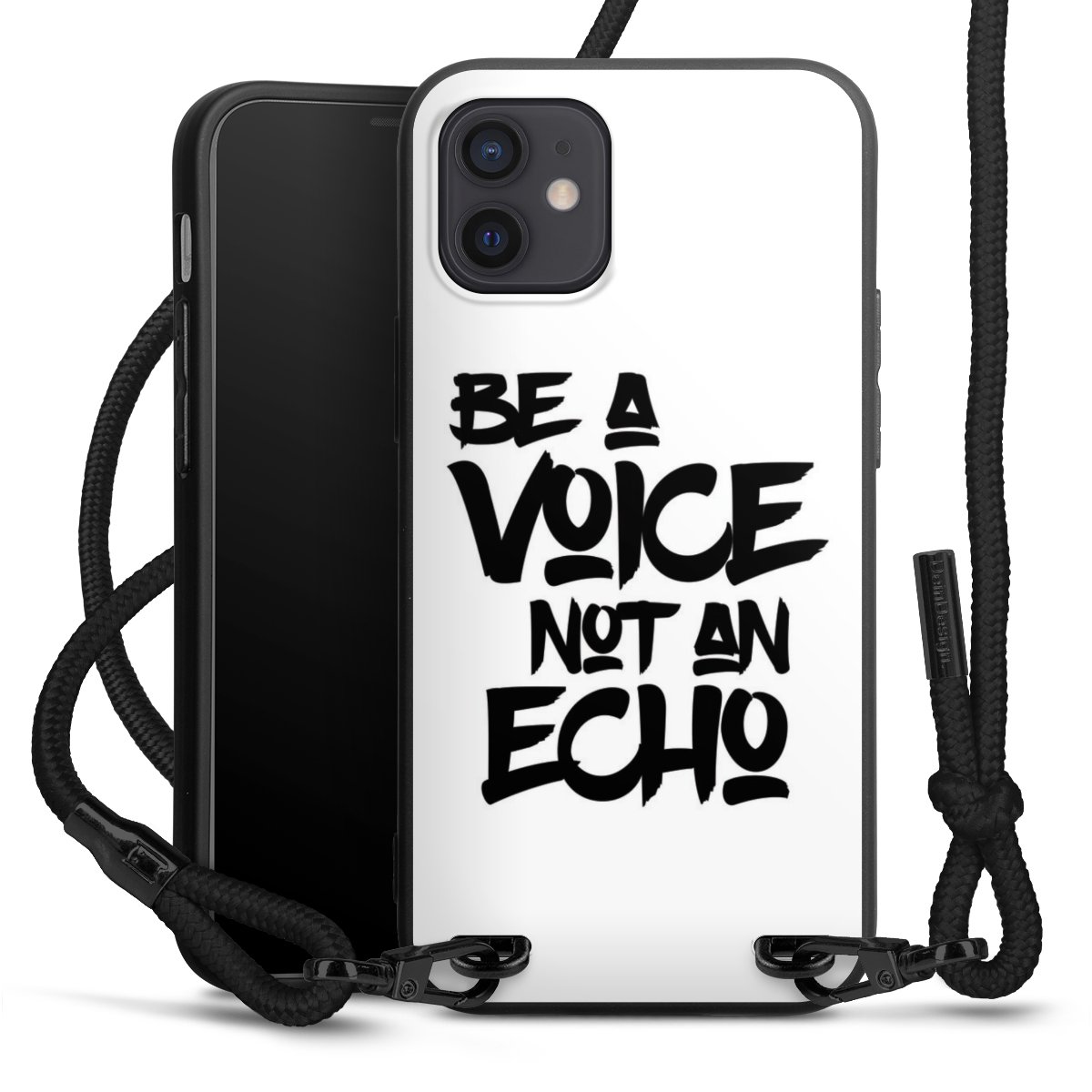 We use the solid direct print process for this phone case, which is why the print area only covers the back and the edge remains unprinted. The case to wear around your neck can be ordered unprinted, fully printed, or partially printed. For your design, either choose one of our exclusive shop motifs or get creative and create your own design, for example with photos and overlays. Design your own personal trend accessory and make an individual statement on the streets!