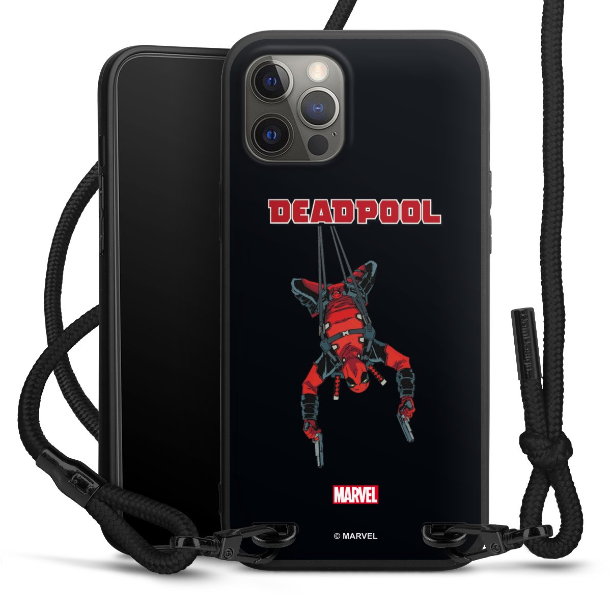Pure Black: Phone case, fabric strap and metal details in stylish matt black.