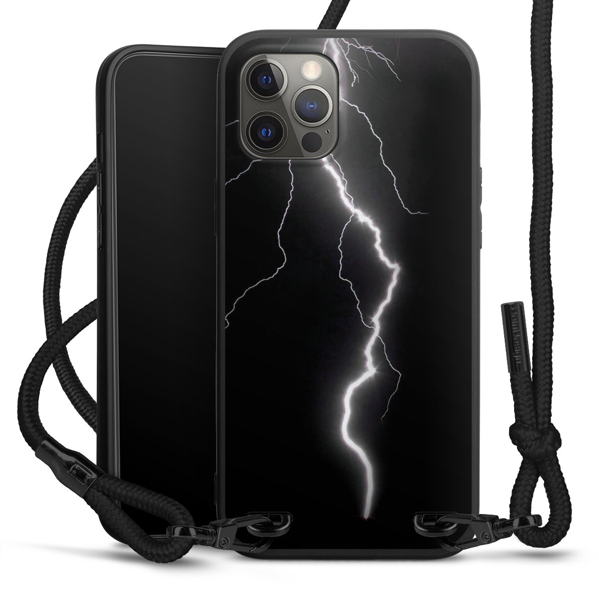 Pure Black: Phone case, fabric strap and metal details in stylish matt black.