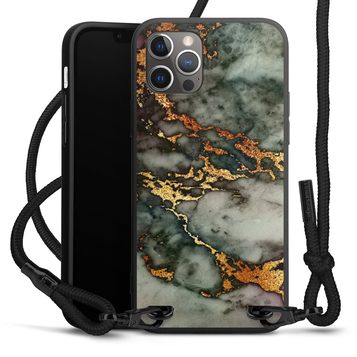 Pure Black: Phone case, fabric strap and metal details in stylish matt black.