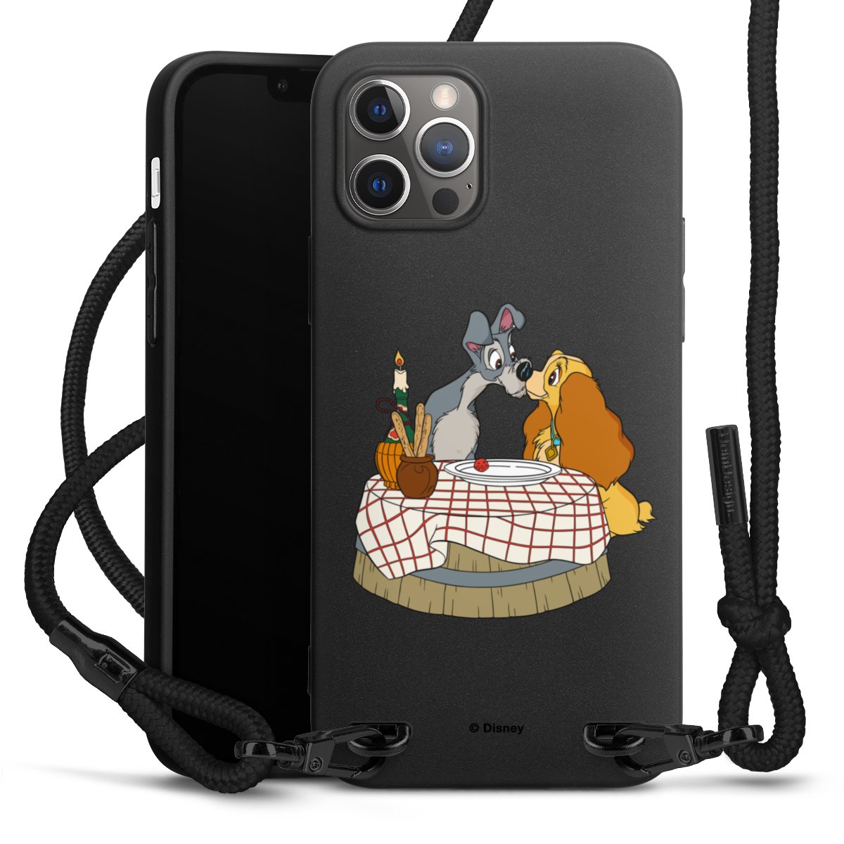 Pure Black: Phone case, fabric strap and metal details in stylish matt black.