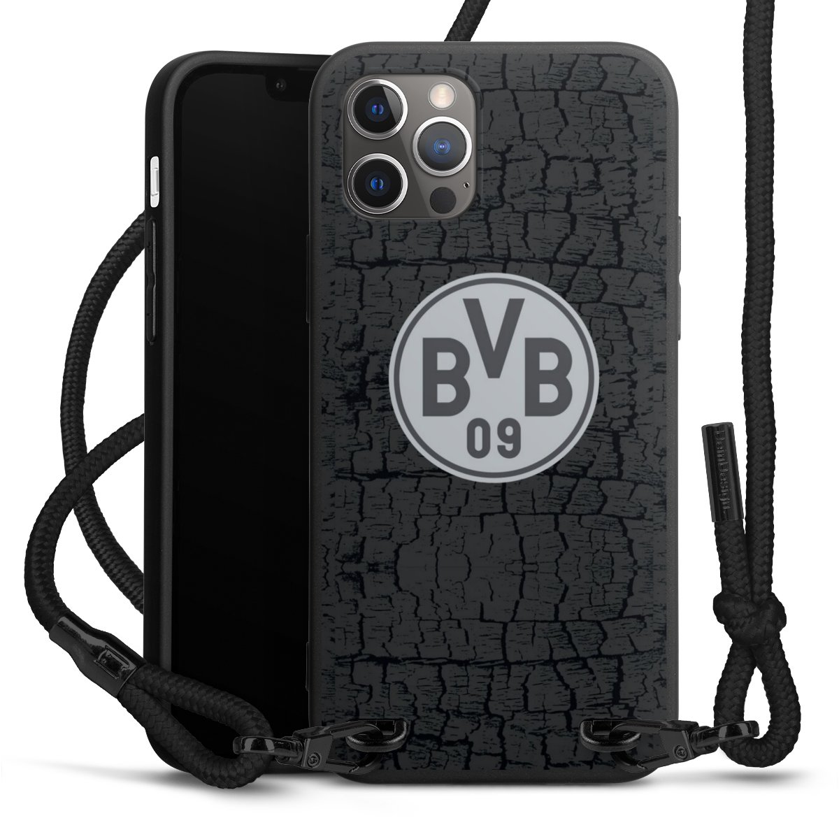 The matt black silicone case is made of flexible TPU (thermoplastic polyurethane) and offers robust protection. The durable, unbreakable material makes the cover flexible and dimensionally stable at the same time. The matte surface makes your design stand out more and is less susceptible to fingerprints and dirt. The stylish trend accessory fits comfortably in the hand and is perfectly complemented by the fabric (polyester) mobile phone strap. The braided fabric strap is approx. 1.70 metres long with a diameter of approx. 0.5 cm. Due to the special knotting technique, the length of the strap can be adjusted by simply pulling it, so that you can adapt it individually to your wishes. The practical case to wear around your neck is available with the fabric strap in black. As a little icing on the cake, we have provided the strap with a chic metal fastener in matt black. The strap is securely fastened to the case with loops made of high-quality genuine leather and press studs. The ends of the fabric strap are covered with metallic end caps and thus protected from fraying.