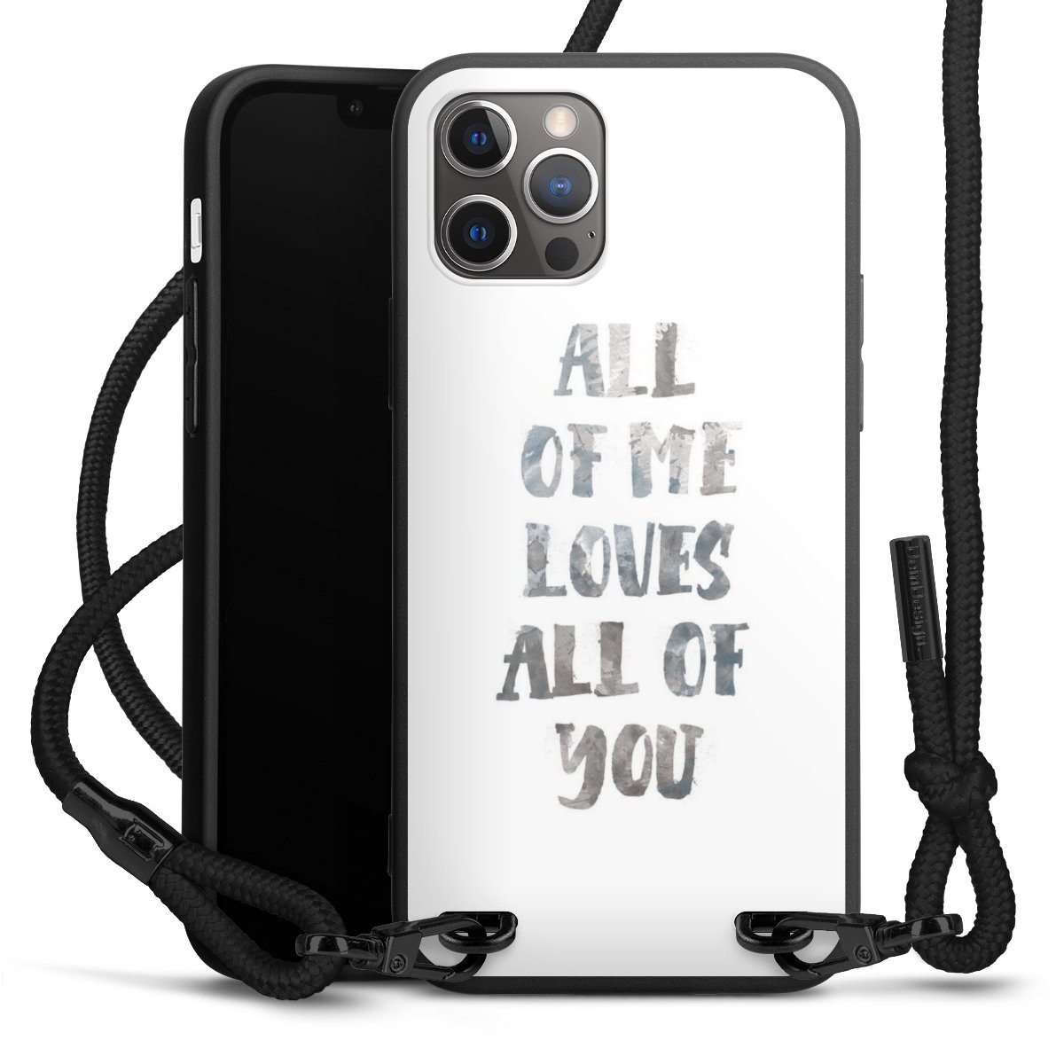 Pure Black: Phone case, fabric strap and metal details in stylish matt black.