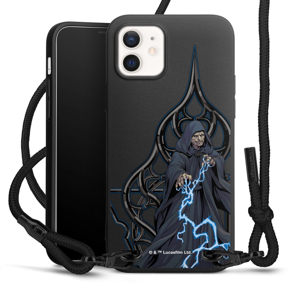 Pure Black: Phone case, fabric strap and metal details in stylish matt black.