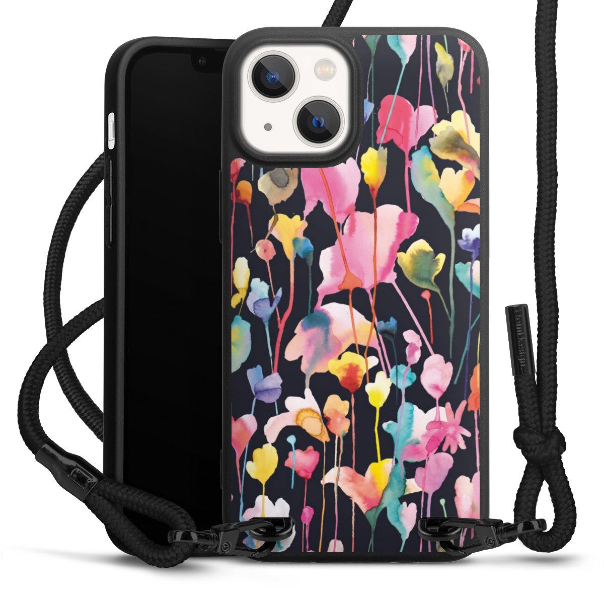 We use the solid direct print process for this phone case, which is why the print area only covers the back and the edge remains unprinted. The case to wear around your neck can be ordered unprinted, fully printed, or partially printed. For your design, either choose one of our exclusive shop motifs or get creative and create your own design, for example with photos and overlays. Design your own personal trend accessory and make an individual statement on the streets!