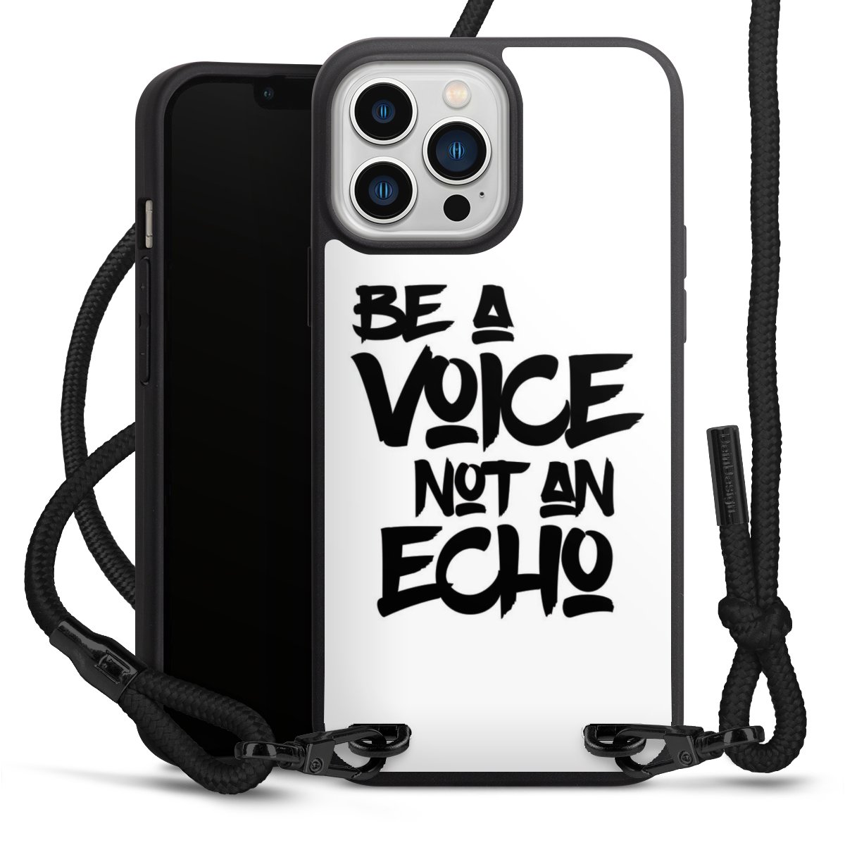 We use the solid direct print process for this phone case, which is why the print area only covers the back and the edge remains unprinted. The case to wear around your neck can be ordered unprinted, fully printed, or partially printed. For your design, either choose one of our exclusive shop motifs or get creative and create your own design, for example with photos and overlays. Design your own personal trend accessory and make an individual statement on the streets!