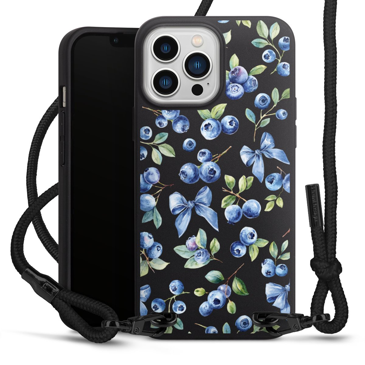 Pure Black: Phone case, fabric strap and metal details in stylish matt black.