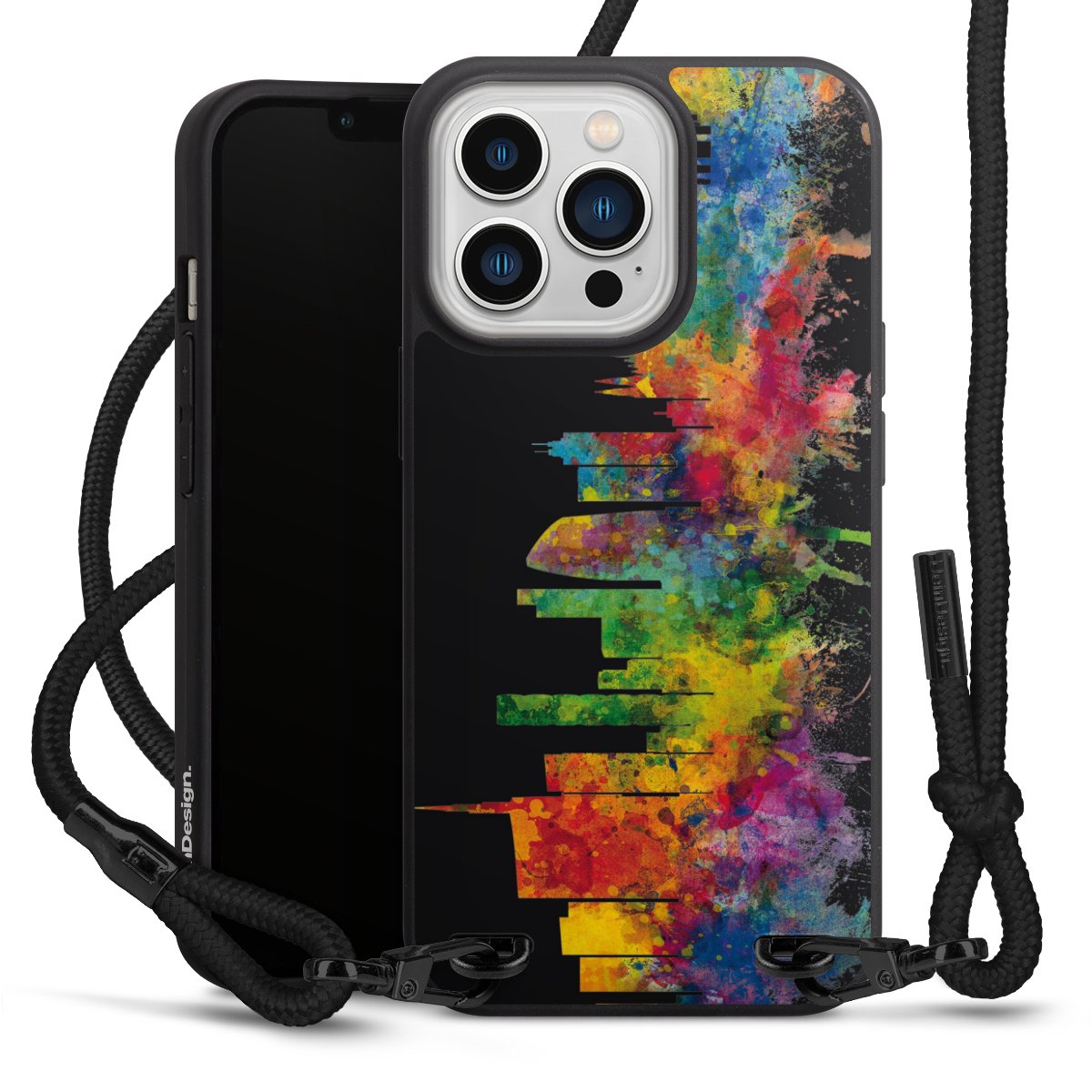 We use the solid direct print process for this phone case, which is why the print area only covers the back and the edge remains unprinted. The case to wear around your neck can be ordered unprinted, fully printed, or partially printed. For your design, either choose one of our exclusive shop motifs or get creative and create your own design, for example with photos and overlays. Design your own personal trend accessory and make an individual statement on the streets!