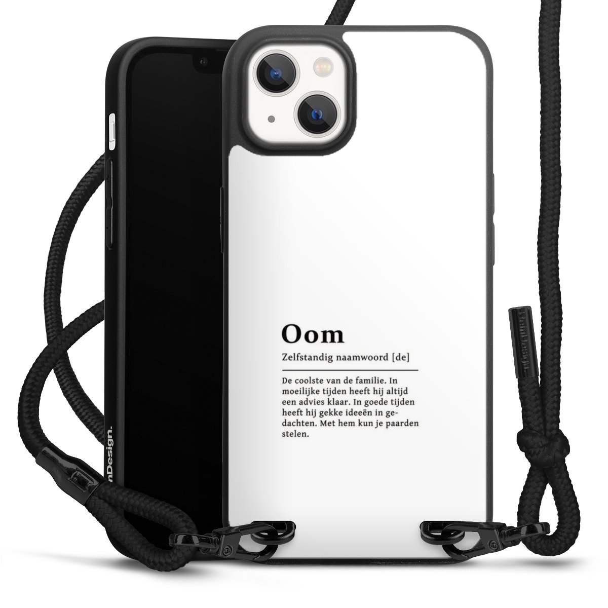 We use the solid direct print process for this phone case, which is why the print area only covers the back and the edge remains unprinted. The case to wear around your neck can be ordered unprinted, fully printed, or partially printed. For your design, either choose one of our exclusive shop motifs or get creative and create your own design, for example with photos and overlays. Design your own personal trend accessory and make an individual statement on the streets!