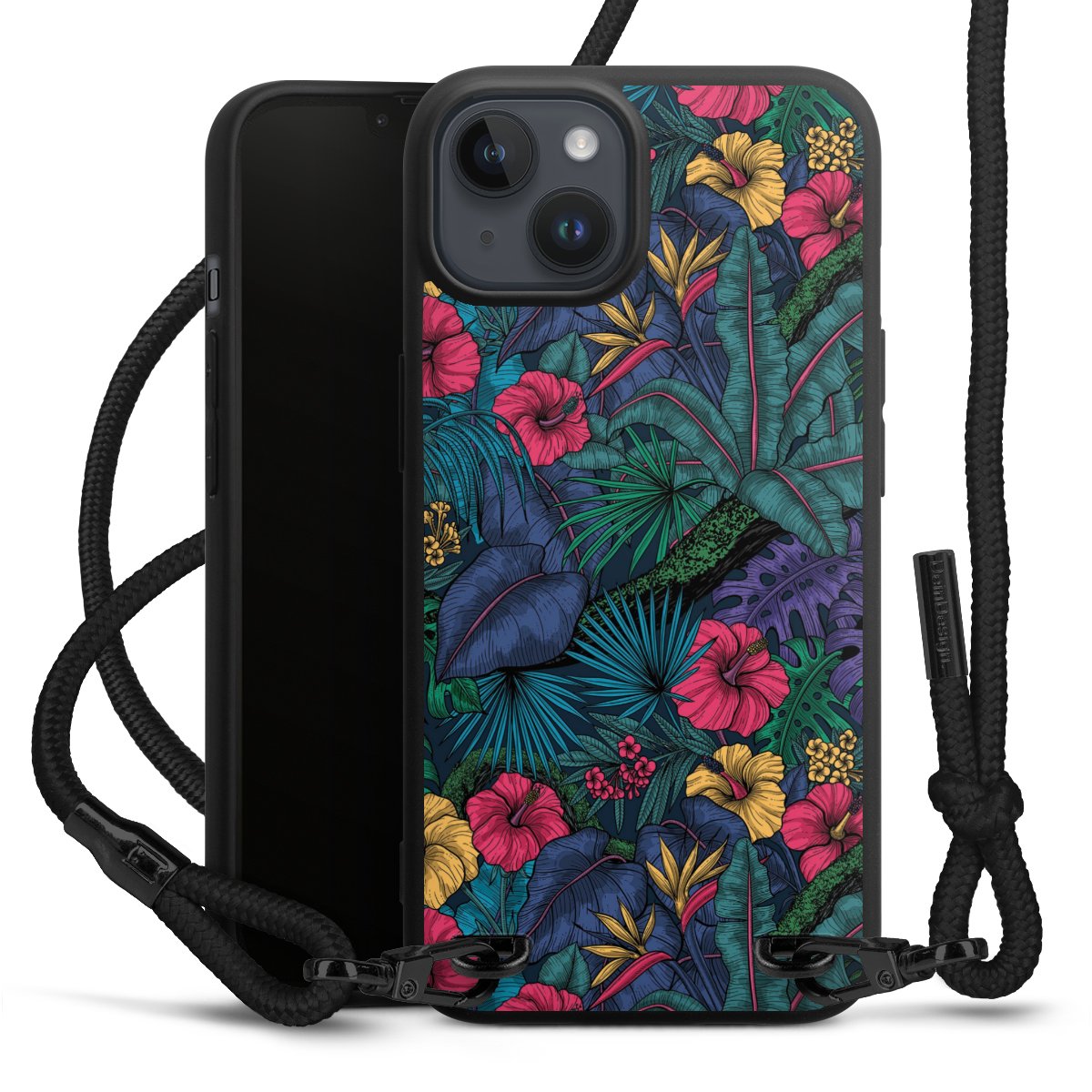 We use the solid direct print process for this phone case, which is why the print area only covers the back and the edge remains unprinted. The case to wear around your neck can be ordered unprinted, fully printed, or partially printed. For your design, either choose one of our exclusive shop motifs or get creative and create your own design, for example with photos and overlays. Design your own personal trend accessory and make an individual statement on the streets!